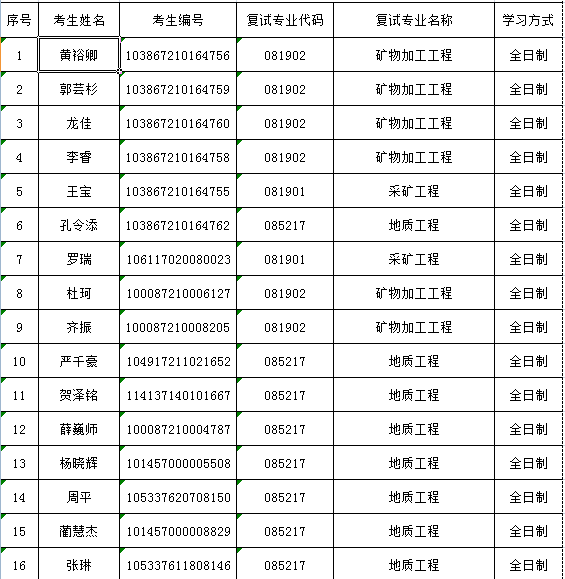 2017年果冻传媒 紫金矿业学院参加复试考生名单
