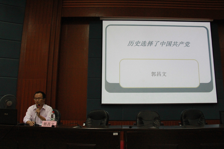 郭昌文老师从“中国共产党奋斗历史的回顾”和“从党史汲取智慧和力量”这两个方面展开报告,期间穿插个人见解,有理有据,令人信服;他分析了共产党取得完全胜利的必然趋势,让学员们深刻地认识到共产党的先进性。整场报告中,郭老师或提问或陈述,与在座学员们一起回顾了中国共产党从建立到取得完全胜利,再到新中国现代化建设到迅速崛起,一共走过的93年历史,让大家感受到了作为一个共产党员肩负的历史使命。