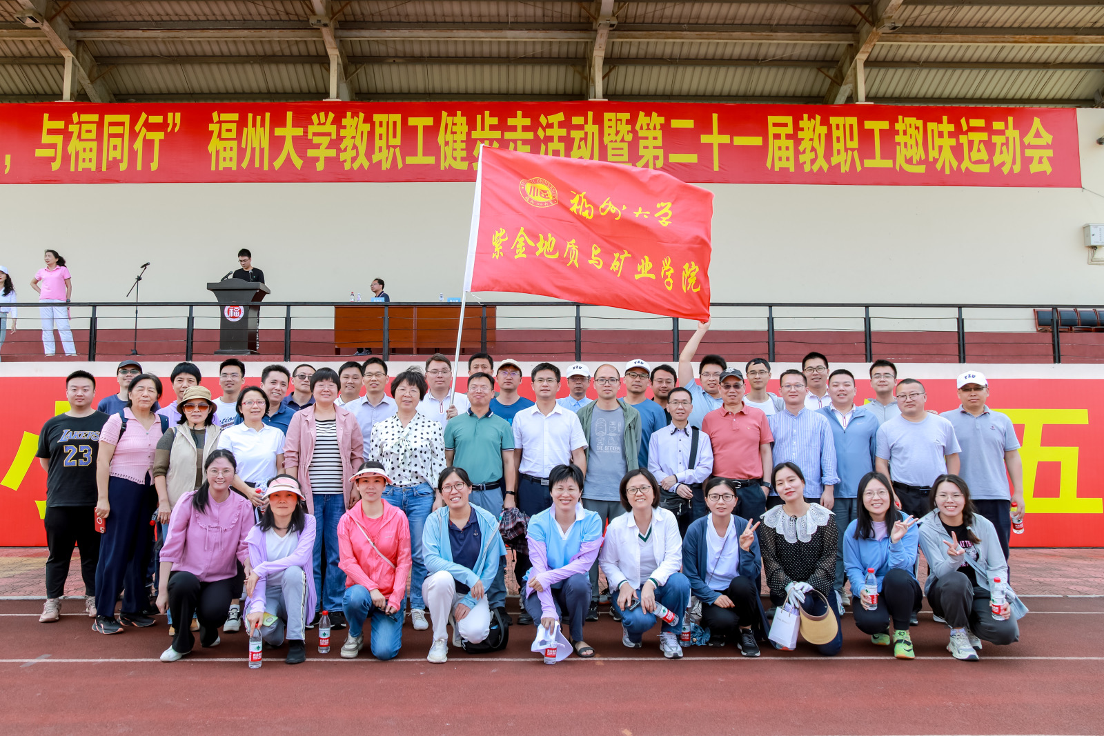 各学院代表队精神抖擞,聚集在第一田径场,大家气势高昂,跃跃欲试。此次健步走活动从