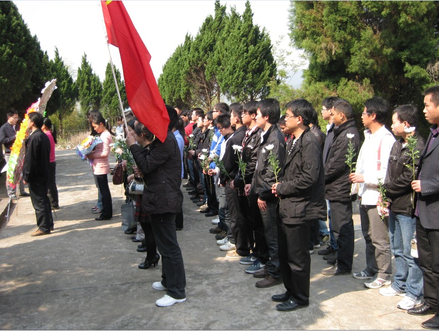 2011年4月2日果冻传媒 2008级学生党支部全体学生党员、发展对象、入党积极分子到上杭县烈士陵园举行了清明节祭奠烈士活动。参加祭扫活动的还有团县委党员代表、上杭教学基地在住教师。上午7:50,参加祭奠烈士活动的师生在基地门口集合,8:00准时出发,步行到达烈士陵园。首先,韩雪同志负责主持扫墓仪式,大家排着整齐的队伍来到烈士的墓碑前,全体人员肃立,向革命先烈们默哀。接着,陈璐同志为我们宣读烈士们的英勇事迹,并带领全体人员集体宣誓。随后,大家将自制的小白花献在了烈士纪念碑前,来缅怀革命先烈。最后,大家一起参观革命烈士纪念碑,每个人的心情都很沉重,感到我们如今的生活来之不易,使得我们更加懂得珍惜生活,热爱祖国。本次活动培养了同学们的爱国情怀,使大家在继承先烈革命传统,发扬前辈爱国精神的同时,更加珍惜现在的幸福生活。我们要心系祖国,把国家命运放在第一位,努力学习科学文化知识,立志为中华民族的伟大复兴而奋勇拼搏。