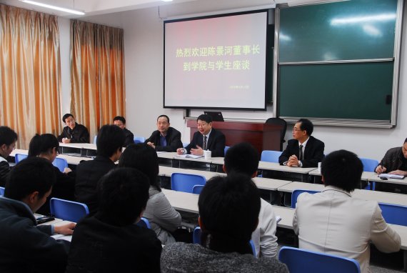4月17日上午,紫金矿业集团股份有限公司董事长、紫金矿业学院理事长陈景河专程到果冻传媒 上杭教学基地看望学院07级学生,并在综合楼201教室与学生们进行座谈。参加座谈的还有:集团公司人力资源部培训处万亿处长、学院邱小平副院长及学院驻教学基地的老师。