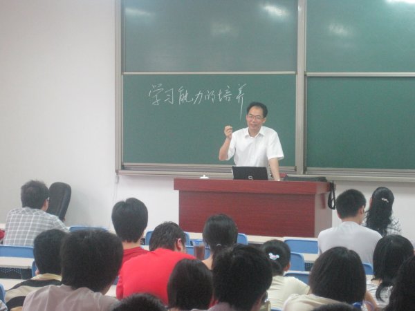 讲堂开始,万老师首先随机让两位同学上讲台用英文翻译同一句话。以此引出“每个人在学习中方法、效率的差异”。随后,他简要回顾了人类从猿类开始的学习进化过程。并指出,人的智能只有10%左右的源于遗传因素,其余的90%来源于后天的培养、学习。之后,他围绕思考能力、想象力思维、观察能力、博学、整合能力等主题,详细地给同学们讲解学习能力的构成及培养方法。他在总结中说道:1、理解与思考是大学主动学习的创造过程;2、被动学习知识储备和积极思考的过程,没有知识的储备是不能进行思考的;3、兴趣是学习的驱动力,想象力是引导创造的过程;4、掌握多学科的知识才会有创造性思维;5、善于运用别人的经验,形成自己的观点、见解和思想。