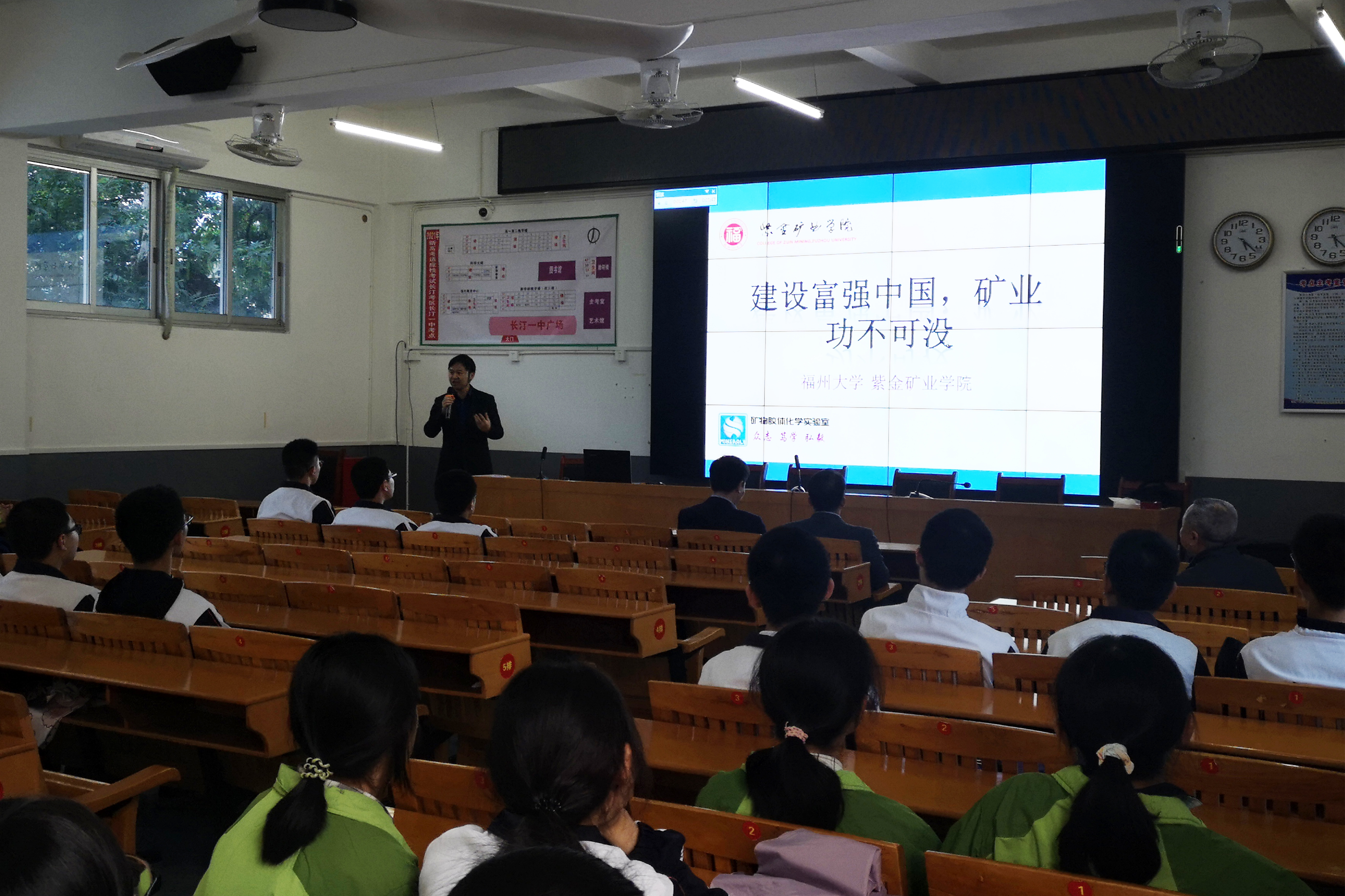 饶峰教授以“建设富强中国,矿业功不可没”为主题,通过国家黄金储备的重要性、可可托海稀有金属开发为祖国“两弹一星”立下的不朽历史功绩、稀土矿物开发在中美贸易战中的重要角色以及现代矿业的绿色、可持续开发技术等事例,向同学们简要介绍了矿业在祖国建设中的重要地位。培训中,饶教授深入浅出,幽默诙谐,与学生充分互动,数次引爆全场。培训后,我校招生考试中心钟光声副主任等多位老师和三所中学校领导就生源地建设、高招录取政策解读、参与中学科技节等方面进行深入探讨。