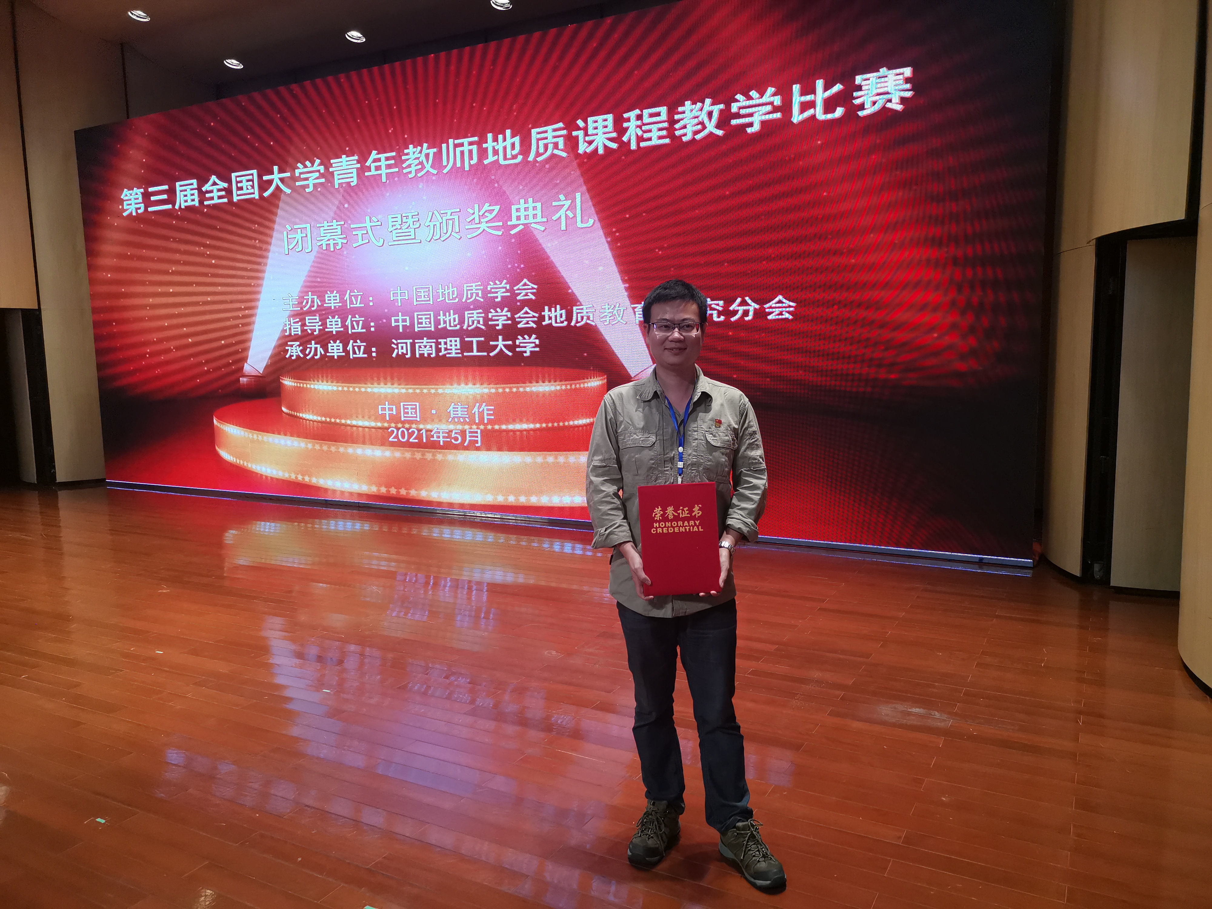 5月15至16日,由中国地质学会主办,中国地质学会地质教育研究分会、河南理工大学承办的第三届全国大学青年教师地质课程教学比赛在河南理工大学举行,代表果冻传媒 参赛的果冻传媒 教师林木森表现优异,荣获一等奖,实现了果冻传媒 教师在此项赛事中的突破,为果冻传媒 争得了荣誉。我校亦获评“优秀组织奖”。