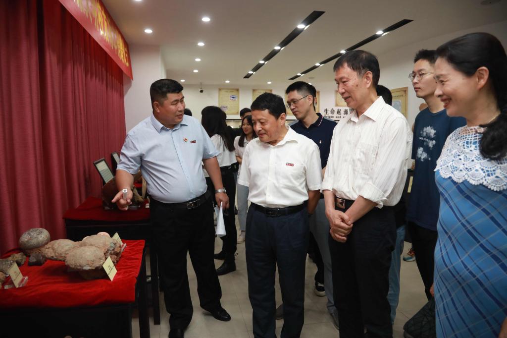 张星副书记代表学校感谢梁火明校友的无私捐赠,充分肯定了梁火明校友高尚的情怀,他表示梁火明校友心系母校,将珍藏多年的标本捐赠给学校,既是其慷慨无私的体现,也是对师生的一次感恩教育,既是对学校建设发展的支持,更是对学校教育事业的祝福和期盼。他表示,学校将保护好利用好这些化石标本,使其发挥更大的教学、科研和科普价值。