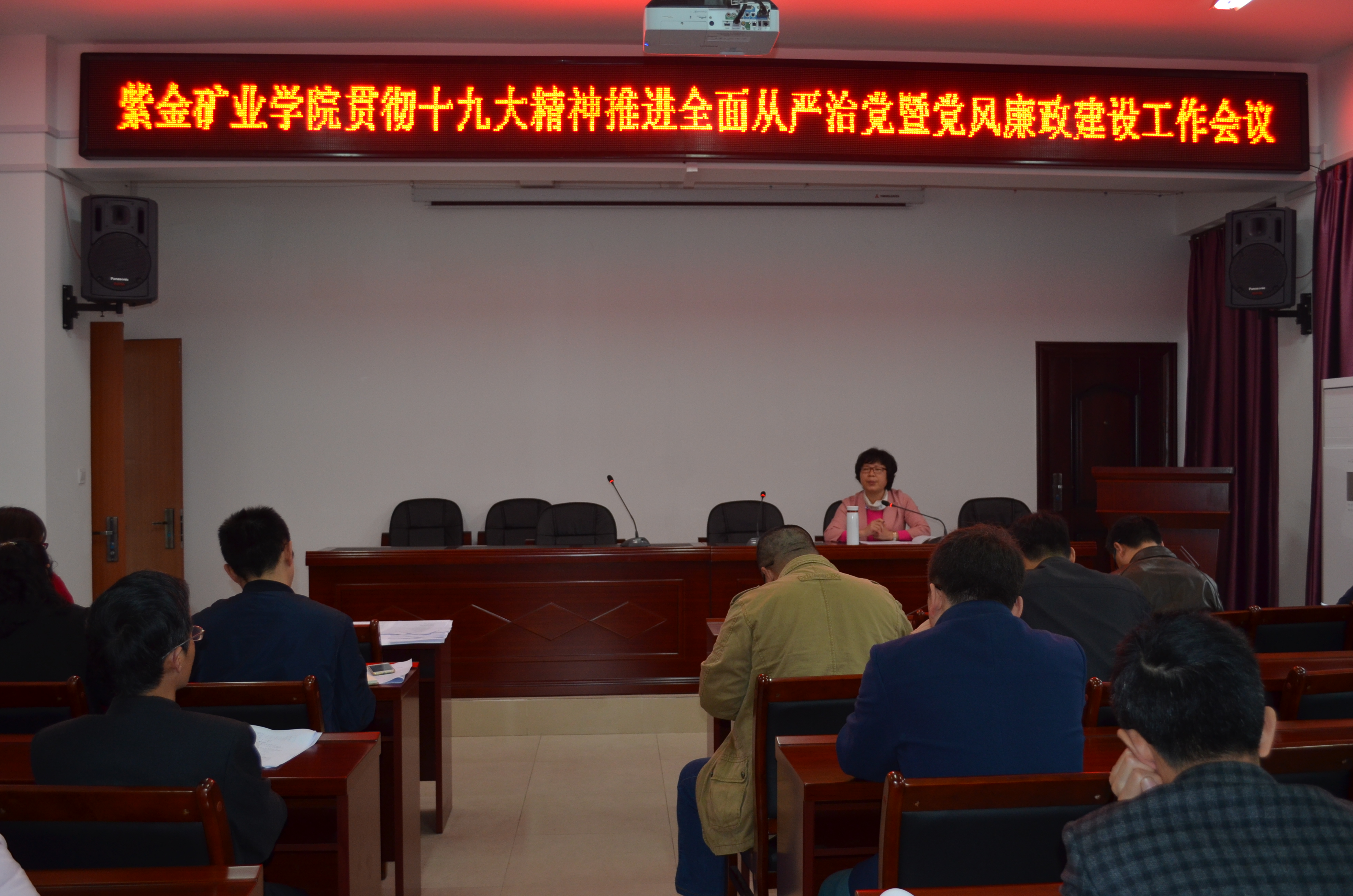 2018年3月15日下午,果冻传媒 召开贯彻十九大精神推进全面从严治党暨党风廉政建设会议。学院全体在家教职工参加会议,会议由徐雪玉书记主持。