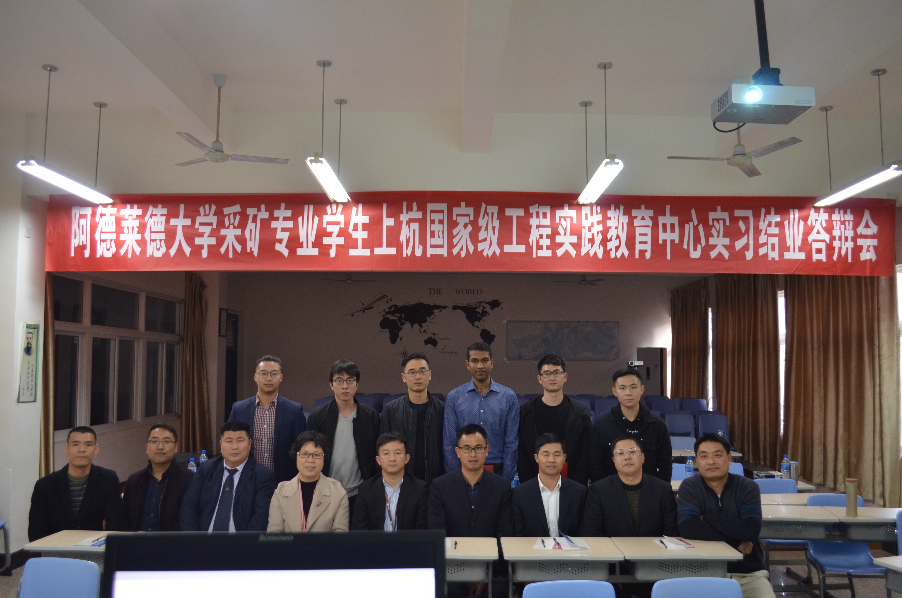 1月22日下午,阿德莱德大学来果冻传媒 交流的6位采矿专业学生的实习结业答辩会在国家级工程实践教育中心——上杭教学基地综合楼201多媒体教室顺利举行。紫金矿业集团股份有限公司人力资源部副总经理褚斌、人力资源部培训处处长张志新、紫金山金铜矿露天采矿厂副厂长简贺源、厂副厂长胡少华、学院党委书记徐雪玉、副院长彭向东、采矿系主任楼晓明、国际化办公室李兵磊高级工程师、上杭教学基地办公室主任钟祥华担任评委出席了答辩会。