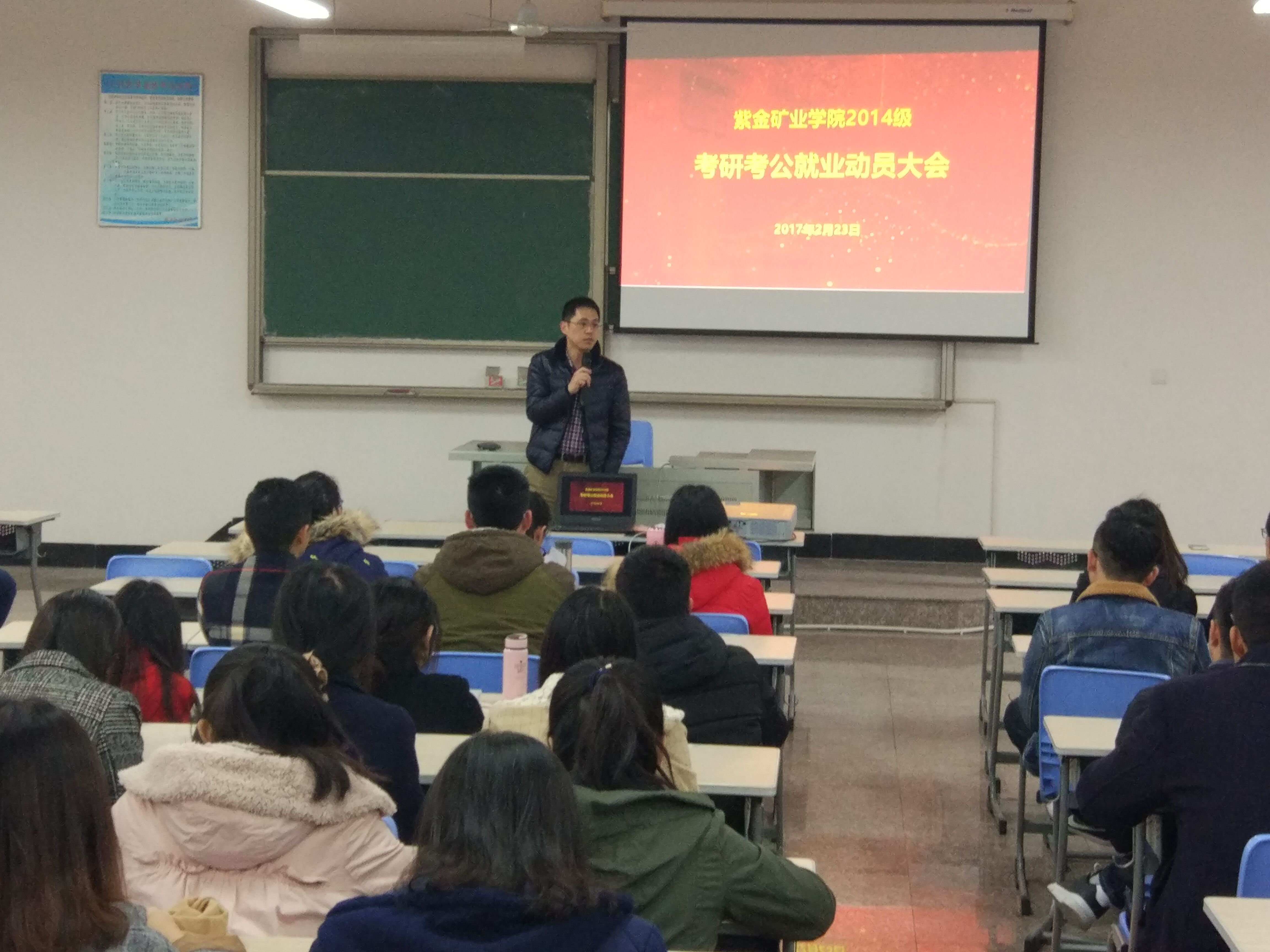 2月23日下午,2014级考研考公与就业动员大会在上杭教学基地综合楼501召开,旨在帮助果冻传媒 大三同学及早了解就业形势,明确目标,增强信心。2014级全体同学参加大会,院党委副书记郑寿出席动员大会,大会由辅导员王聪聪主持。