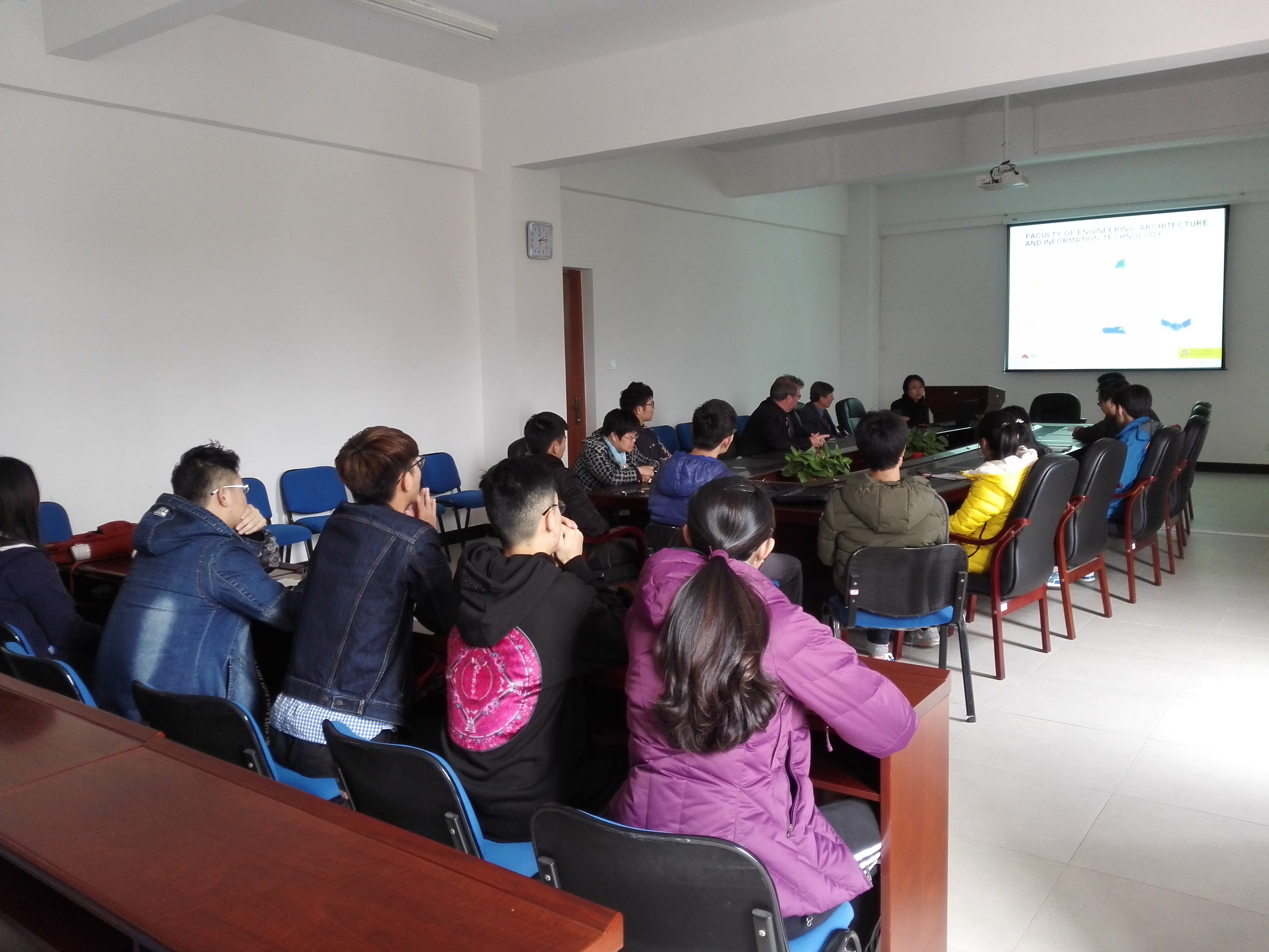 3月9日下午2点,应学院邀请,澳大利亚昆士兰大学化工学院院长Peter Halley教授、冶金系主任Peter Hayes教授和工学部国际办Grace Li女士在果冻传媒 219会议室面向全院有出国深造意愿学生举行了留学宣讲会,详细介绍了赴昆士兰大学留学相关事宜,并与学院印万忠执行院长、左蔚然和刘金艳等教师就昆士兰大学工学部与紫金矿业学院的合作办学进行了交流。