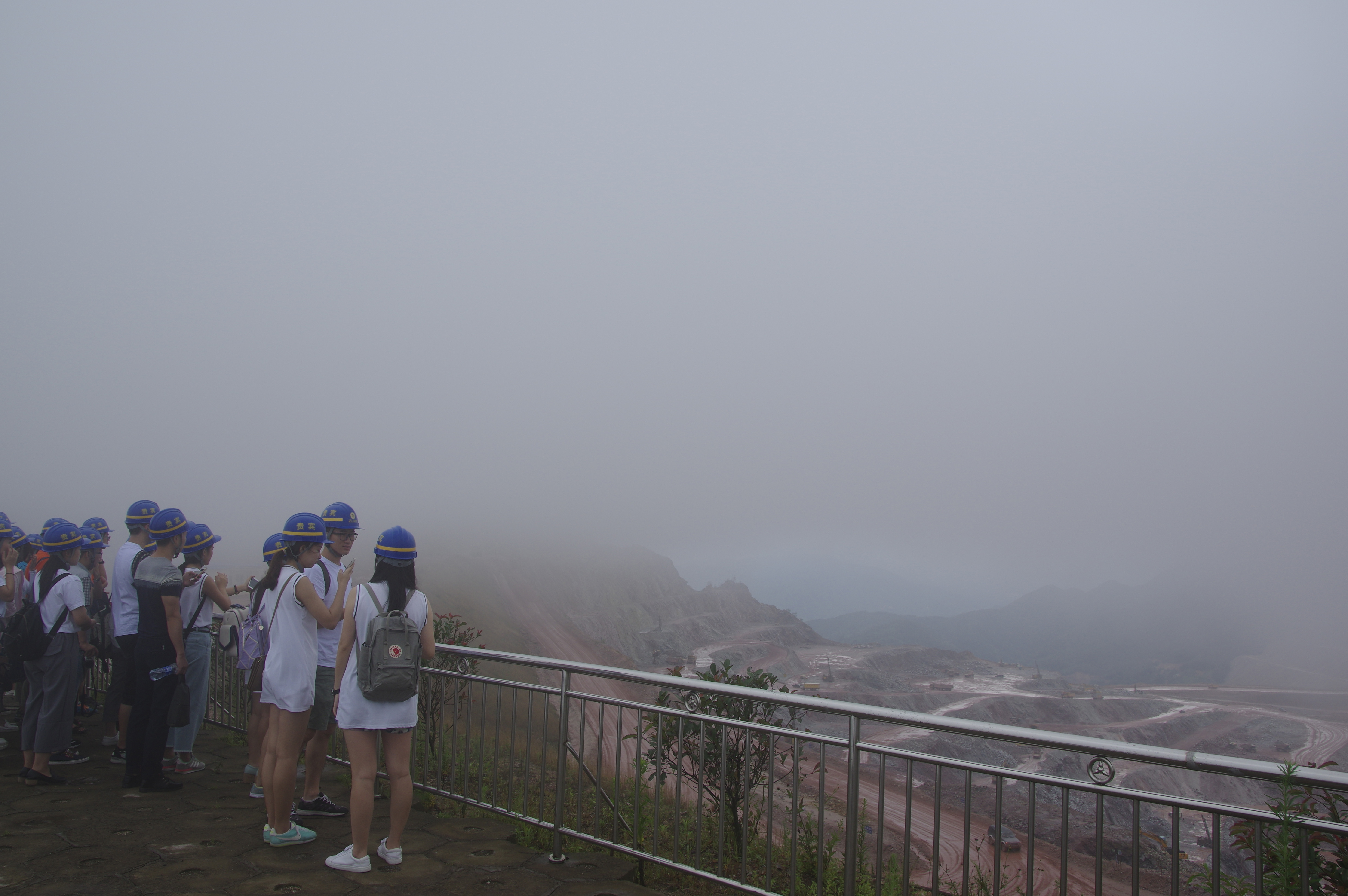 上午九点,实践队队员来到了紫金矿业集团紫金山金铜矿。首先,大家观看了一个简短的视频,了解进入矿山参观所需要的安全准备。之后,在讲解员的带领下,实践队登上了观景台俯瞰了紫金露采场的作业场面和选矿厂的全貌,了解了露采场的设计过程。展现了紫金矿业集团“要金山银山,更要绿水青山”的理念。