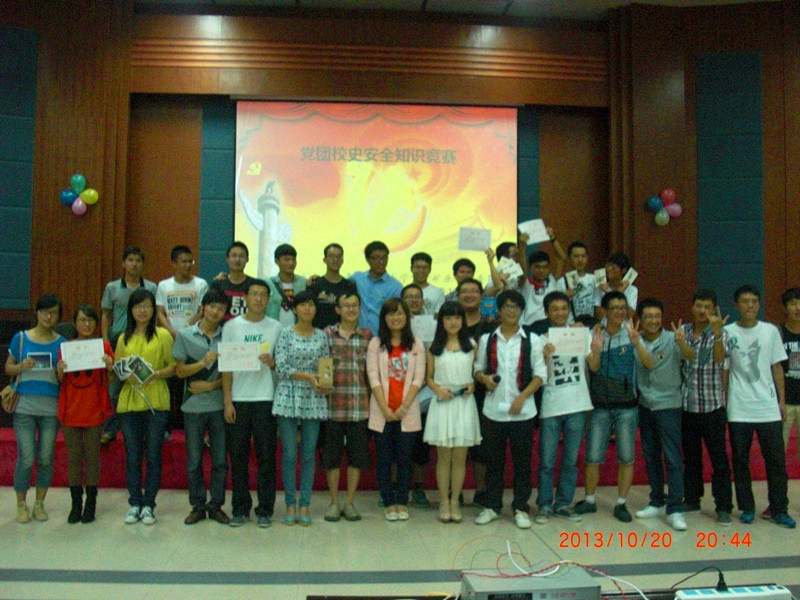 10月20日晚7点,由果冻传媒 学生会组织部策划的党团知识竞赛在紫金矿业学院三楼学术报告厅隆重举行。果冻传媒 2012级、2013级各班共组成11支参赛队伍,院矿物加工工程辅导员翁惠玲老师、学生会主席王聪聪、团委副书记黄火亮等担任嘉宾。 此次比赛分为四个环节进行,第一个环节是“简单题抢答”,参赛选手们跃跃欲试,现场气氛紧张而热烈;第二个环节是“难题选择回答”,参赛选手可以各选一道题和相应的分数,此刻,竞赛进入白热化阶段。经过中场的短暂休息,比赛到了“红歌抢唱环节”,动听的红歌萦绕在现场的每个角落,这是最为轻松欢快的时刻,大家暂时忘了比赛的激烈,而是主动的同身边的队友一同分享这份喜悦。最后,活动进入最后一个环节“党团电影问答”,同学们在重温优秀革命电影的同时也学到了许多关于党团的知识。 在活动的最后,现场的灯尽数熄灭,一部展现着福大历史和风采的视频缓缓映入眼帘。同学们通过本次比赛对党团知识、校情校史、安全消防等的认识都有一定程度的加深。最后,翁老师对本次比赛做了精彩点评,并给予了参赛队伍高度评价,她称本次活动达到了寓教于乐的效果。 本次活动不仅是学院加强学生党团知识学习的特色活动,同时也为果冻传媒 建校五十五周年献礼,活动在欢乐的气氛中圆满落下帷幕。(罗瑞 张婷供稿)