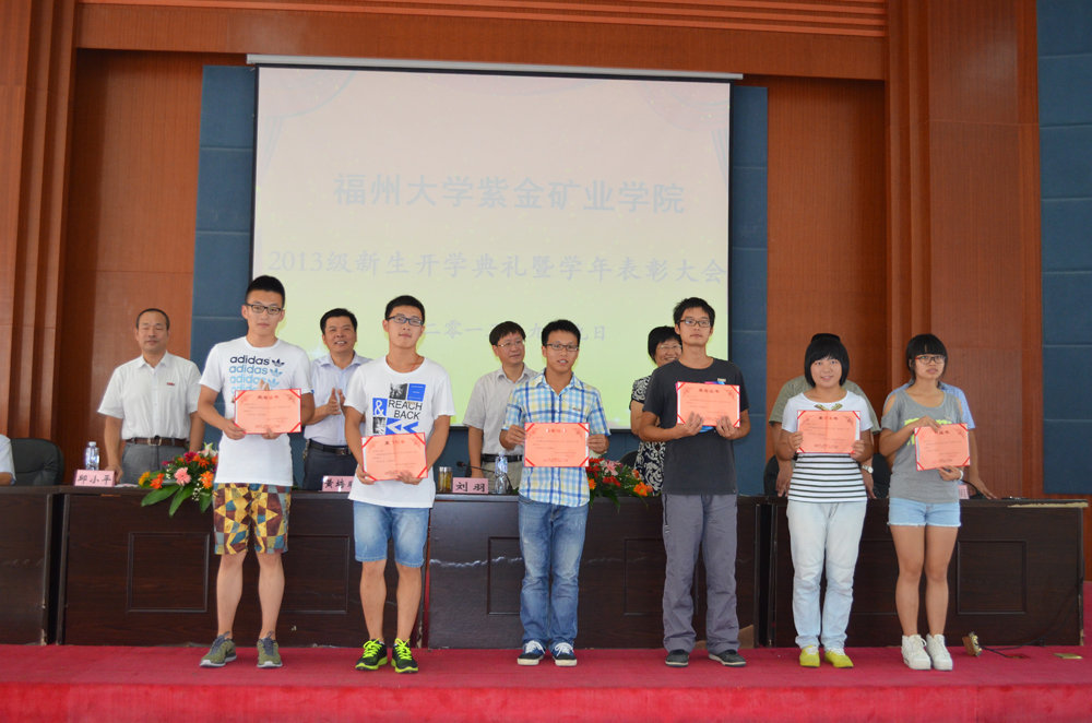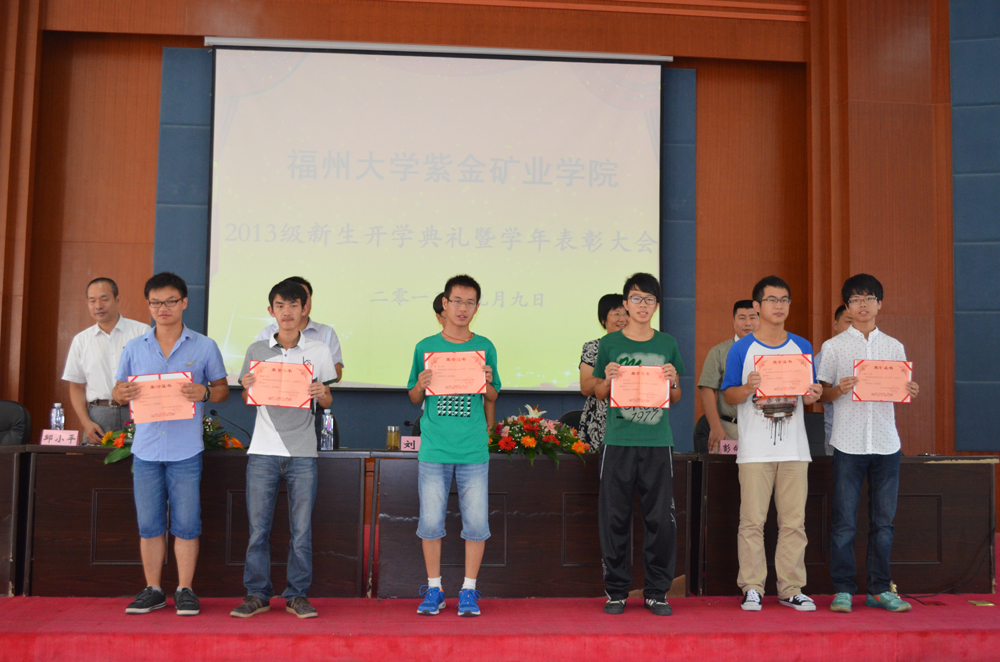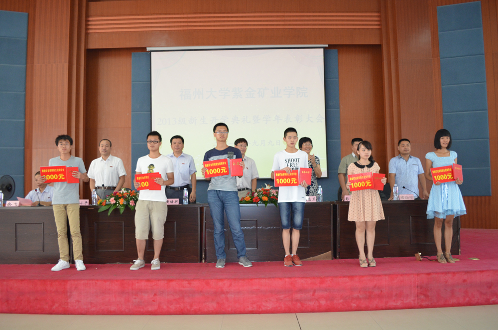 2013级新生奖学金一等奖生代表上台领奖获奖学