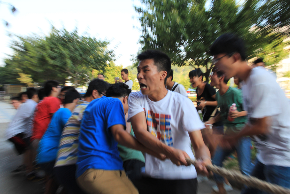 为丰富2013级新同学的课余文化生活,增进新同学们之间的互动交流,培养学生的团队协作能力,9月10日下午,在学生生活区一区组织了一场别开生面的新生拔河比赛。 比赛还未开始,双方的队员就摩拳擦掌,准备大展身手。随着比赛哨声一响,拔河绳上的红绳就不断的来回移动,双方各自喊着自己队伍的口号,场面异常激烈。令在场的观众为参赛队伍摇旗呐喊,不自觉的热血澎湃。最终,2013级资源勘查2班代表队经过了8场拼搏,摘下了冠军头衔。 此次拔河比赛,丰富了果冻传媒 2013级同学们迈入大学的校园生活,活动取得了较好成效。