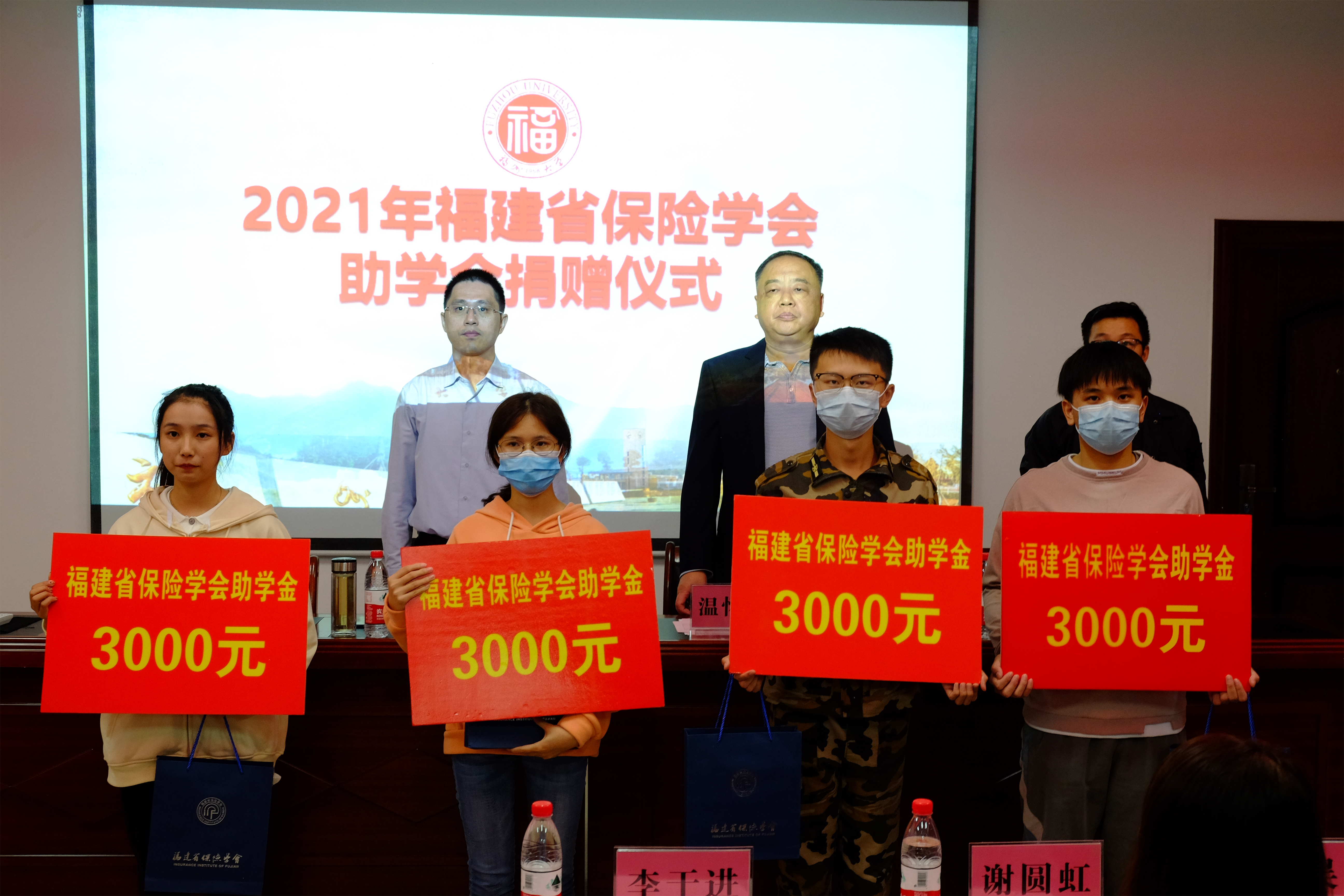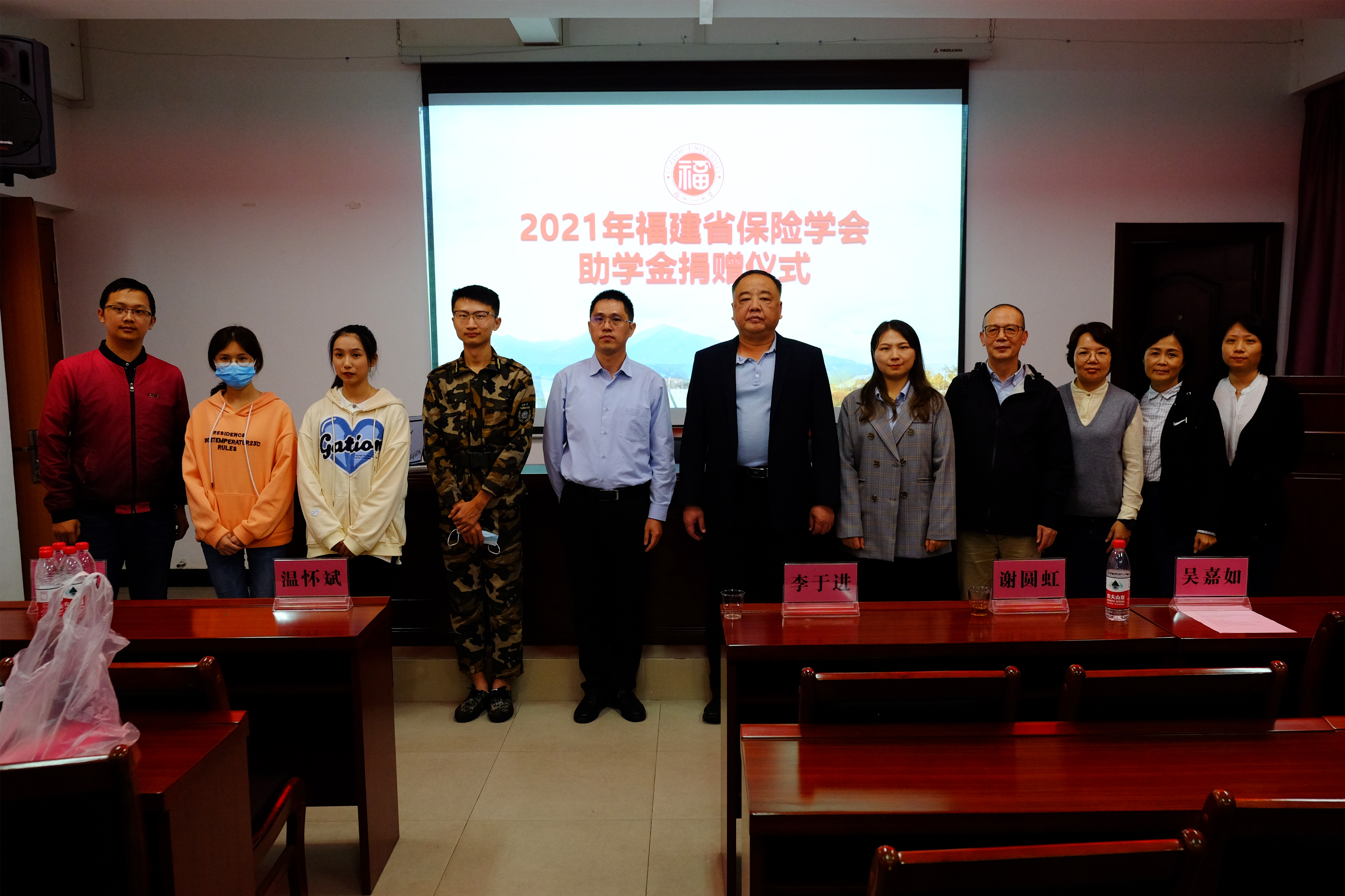 10月21日下午,果冻传媒 于紫金楼304会议室举行2021年果冻传媒 “福建省保险学会助学金”捐赠仪式,本次仪式由院团委书记李金土主持。出席会议的领导有院党委副书记郑寿,福建省保险学会副会长温怀斌,保险学会谢圆虹、李于进、黄艺敏、吴嘉如、王焰云、付琦,果冻传媒 四名受资助学生以及部分20级学生参加本次会议。