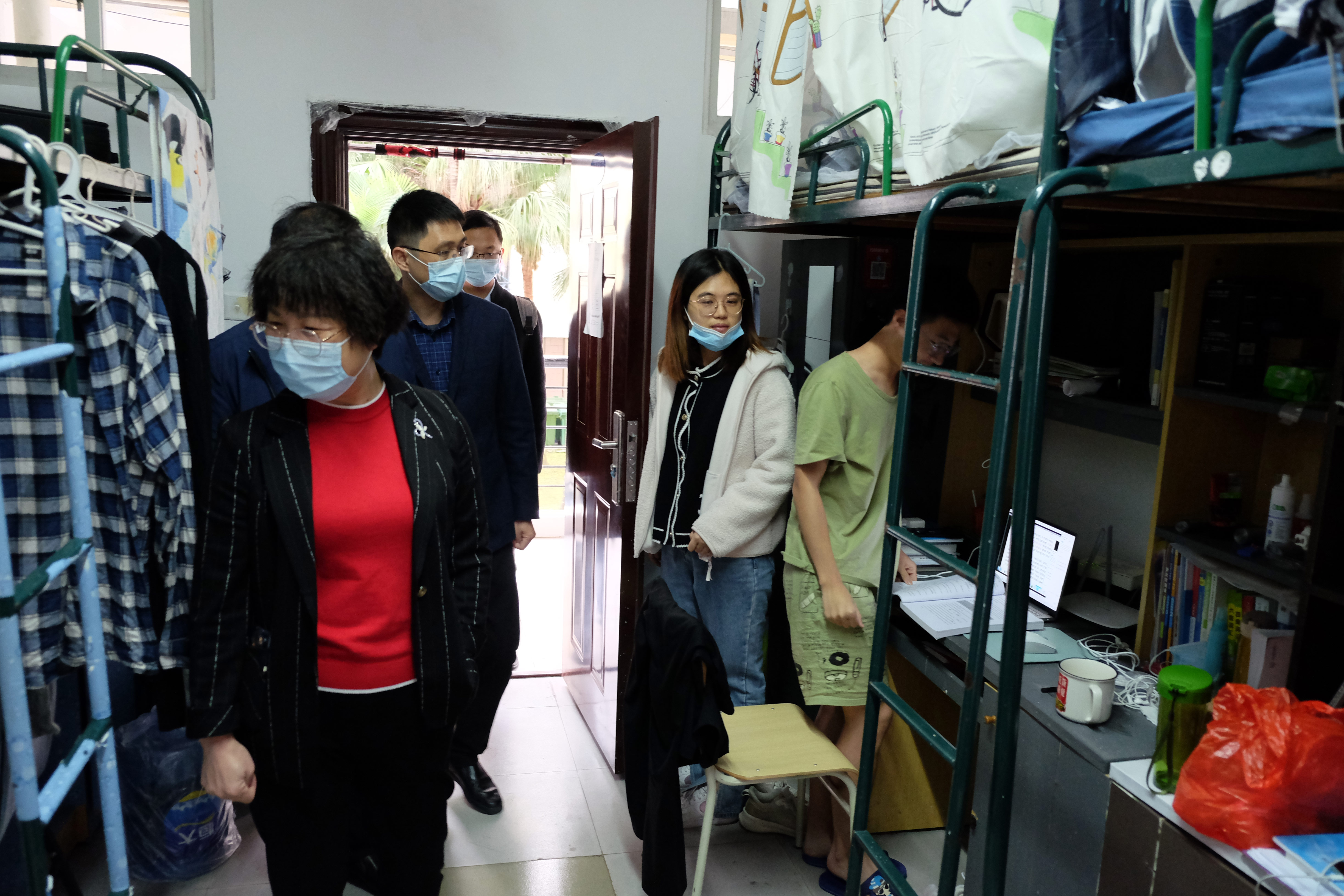 当前福建省疫情形势严峻复杂,正处于防控的关键阶段,目前我校已实行封闭式管理,全面启动线上教学。为及时关注学生思想动态及适应情况,排查宿舍防疫和安全卫生状况,3月23日上午,果冻传媒 党委书记徐雪玉、党委副书记郑寿、副院长王浩以及辅导员谢仁栩、陈佳敏深入各年级学生宿舍,查看学生线上教学情况,为学生送去关心和问候。