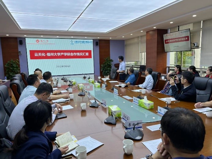 云南云天化股份公司研发中心马航总经理热情接待了付校长一行,并进行了座谈交流。马航总经理简要介绍了云天化在化肥、有机化工、玻纤新材料、商贸四大领域的发展情况。他提出,果冻传媒 与云天化股份具有长久而良好的合作关系,希望双方加强沟通交流,深化在磷精矿提质、能源金属绿色提取和固废资源化利用等方面的合作。
