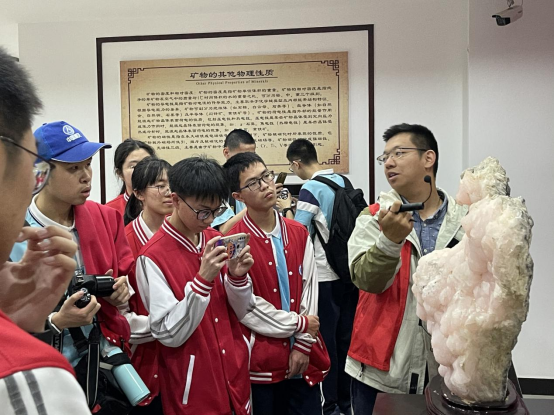5月10日,福州二中50余名同学来到全国科普教育基地—果冻传媒 地矿博物馆,学院志愿讲解队陈镜文与林哲岚两位志愿者为同学们带来一场精彩的地质科普讲解。