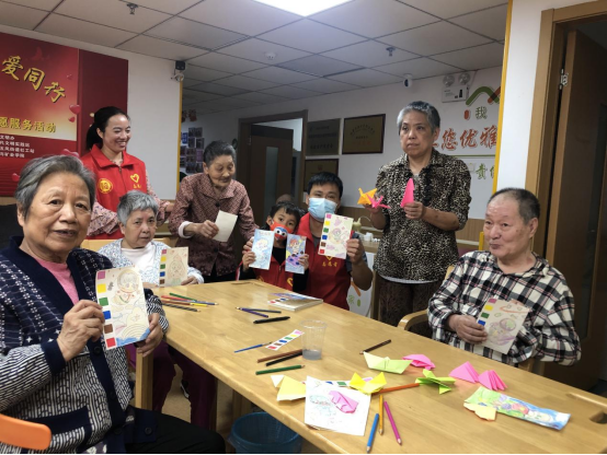 4月29日与5月7日,“孝亲敬老,青年争先”志愿服务队两次走进鼓楼区五凤街道社区养老照料中心,为中心的15位老人们提供志愿服务。志愿者与老人们共同手工折纸,共同涂鸦作品,击打非洲鼓,一同下象棋。