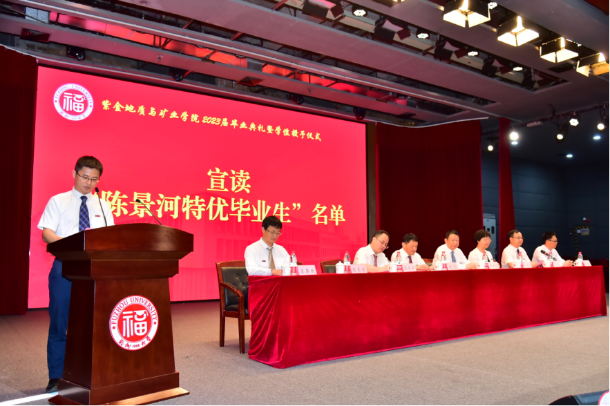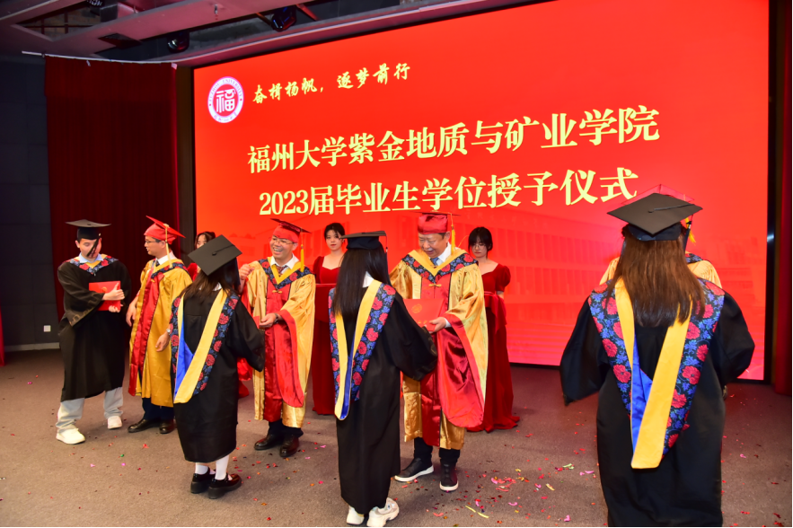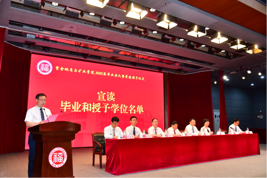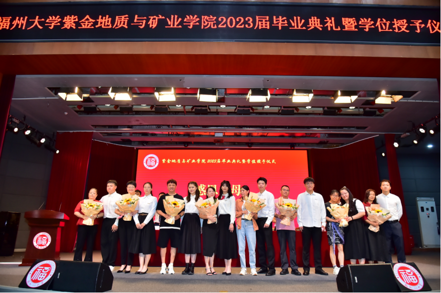 毕业生代表陈勇康和黄艳娜同学讲述了自己难忘的福大学习经历给自己带来的成长,他们代表全体毕业生向紫金矿业集团、学校和学院表达衷心的感谢和祝福,希望同学们在未来的道路上乘风破浪、扬帆起航、奋发图强,成为母校和母院永远的骄傲。