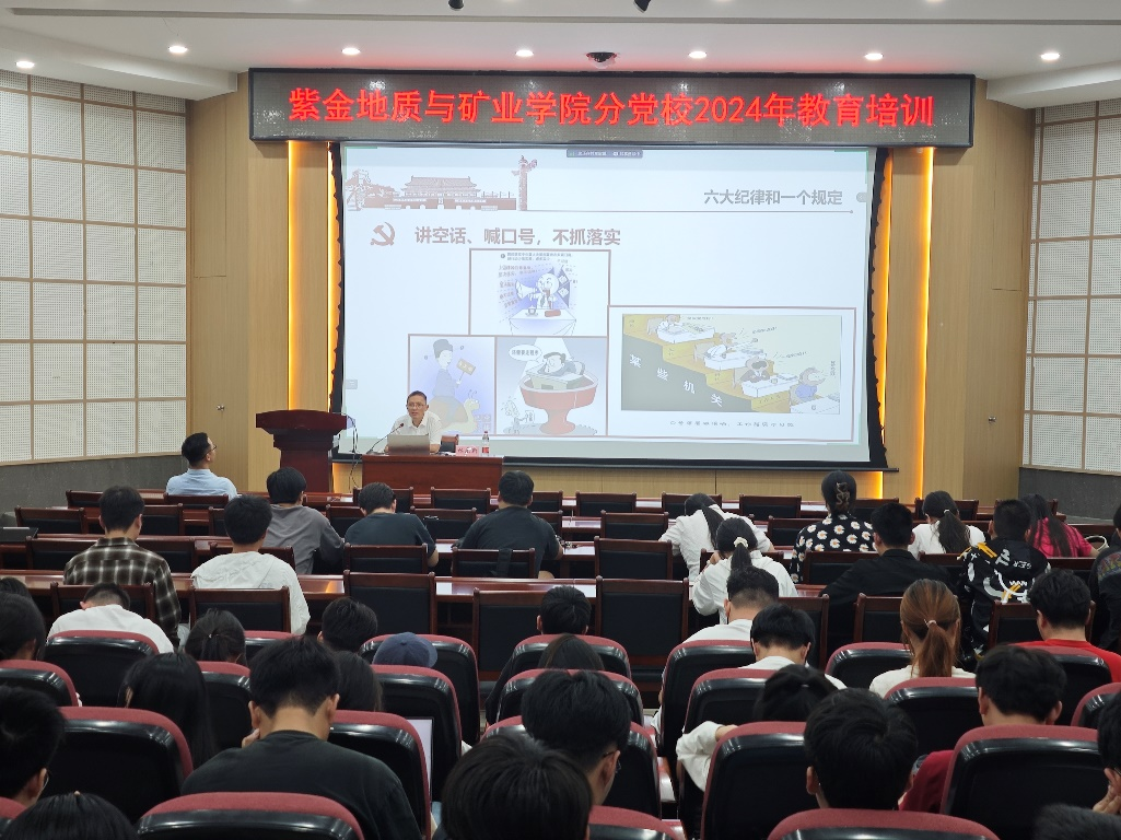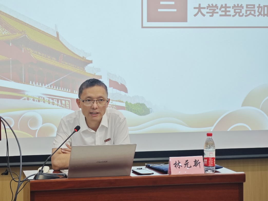 林元新同志首先从“党的十八大以来,党风廉政建设和反腐败斗争取得了历史性、开创性的成就”谈起,并从党的纪律概述、六大纪律和一个规定、大学生党员如何加强自身纪律建设三个方面对新时代党的纪律建设展开。林元新老师又将党的纪律分为定义、特点、发展历程、形式与内容、建设成就五个模块进行了清晰明了的阐述,帮助党员同志厘清脉络,更深刻了解我党的纪律建设。接着,他详细讲解了六大纪律和一个规定,通过高校党员容易犯错误的重要风险点警醒大家引以为戒。通过身边这些真实的案例,同志们对六大纪律和一个规定有了更具象的认知,时刻警醒自己应以身作则,切勿误入歧途。
