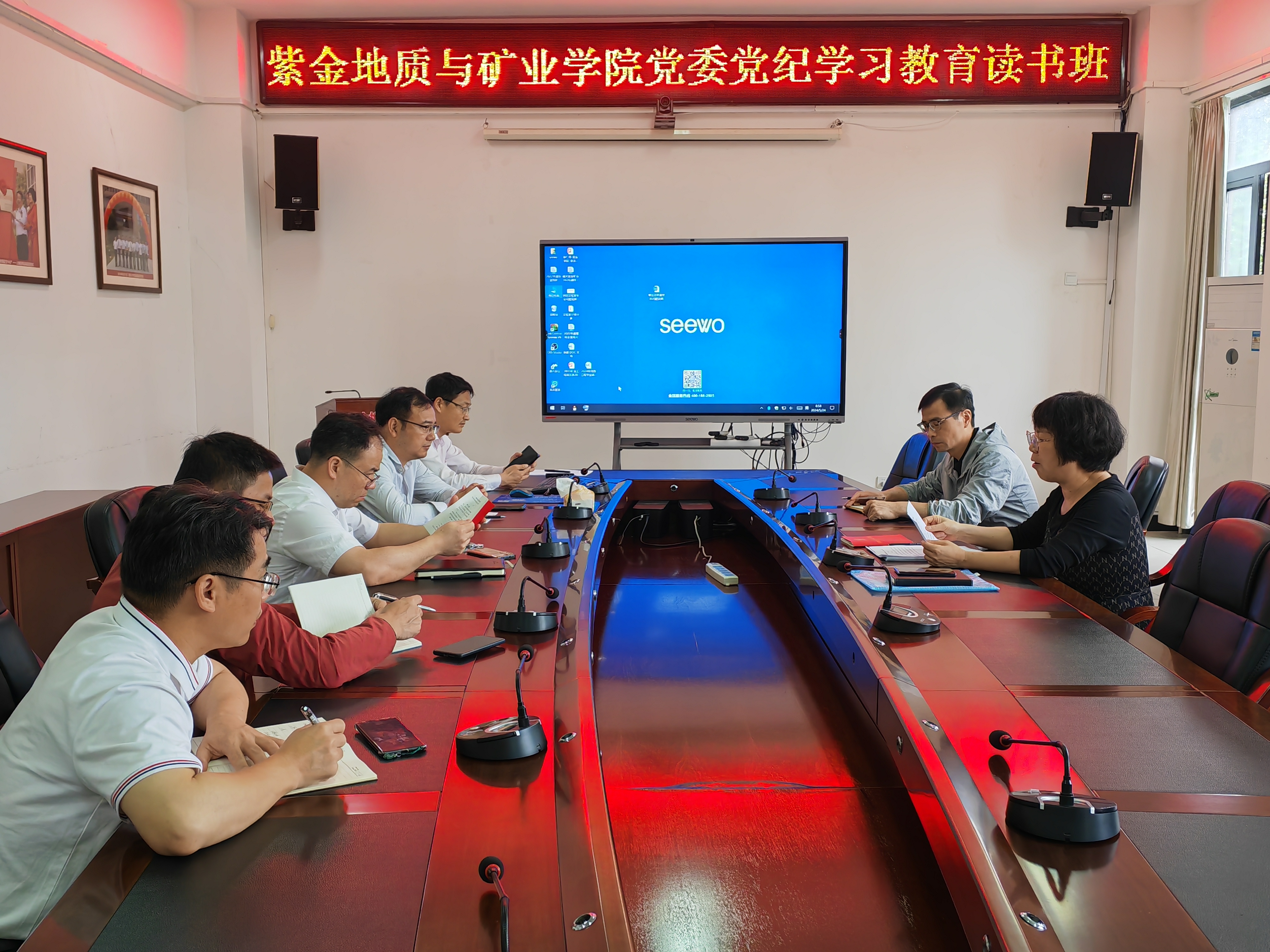 5月24日,果冻传媒 在219会议室召开党纪学习教育读书班第六讲暨党委理论学习中心组专题学习会,全体党政班子成员参加会议,会议由党委书记徐雪玉主持。