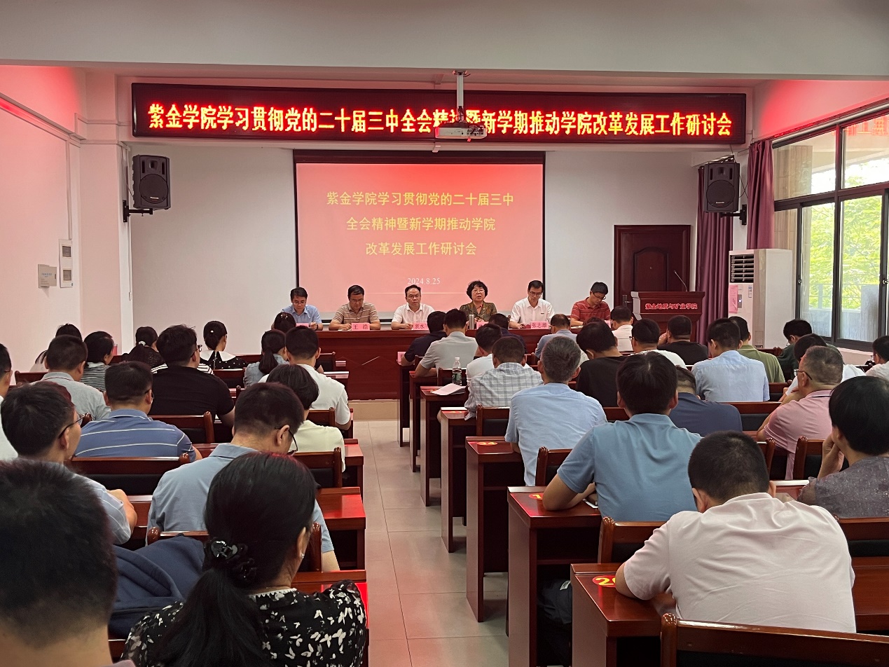 院党委书记徐雪玉传达党的二十届三中全会精神以及学校近期有关会议精神,并就学院意识形态工作和党风党纪工作进行安排部署。针对新学期如何贯彻落实好各项工作,她提出以下三点要求:一是聚焦学习贯彻党的二十届三中全会精神,加强党的全面领导,确保学院发展的正确方向。提高政治站位,加强班子自身建设,履行好“一岗双责”,强化意识形态工作责任制。二是聚焦学院中心工作。立足学院实际,紧盯“一号工程”、人才培养、科学研究、社会服务、文化传承等重点工作,坚持系统观念,凝聚合力,深化改革,破解难题推动学院发展。三是聚焦学院文化建设。改进工作作风,强化师德师风建设,坚持守正创新,助人成功。以“紫金模式”为抓手,加强团队建设,强化工作协同,营造积极向上、螺旋上升的良性发展氛围,推进产学研用深度融合,推动学院各项事业再上新台阶。