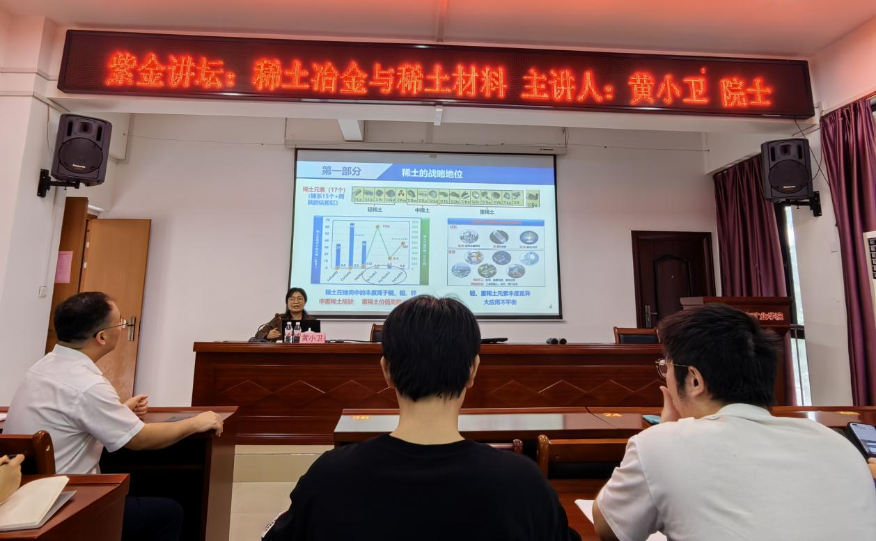 2024年11月14日,中国工程院院士、有研科技集团有限公司首席科学家、稀土国家工程研究中心主任黄小卫教授做客紫金讲坛,为全院师生带来了题为“稀土冶金与稀土材料”的学术报告。报告会由学院院长衷水平教授主持,100余名师生参会。