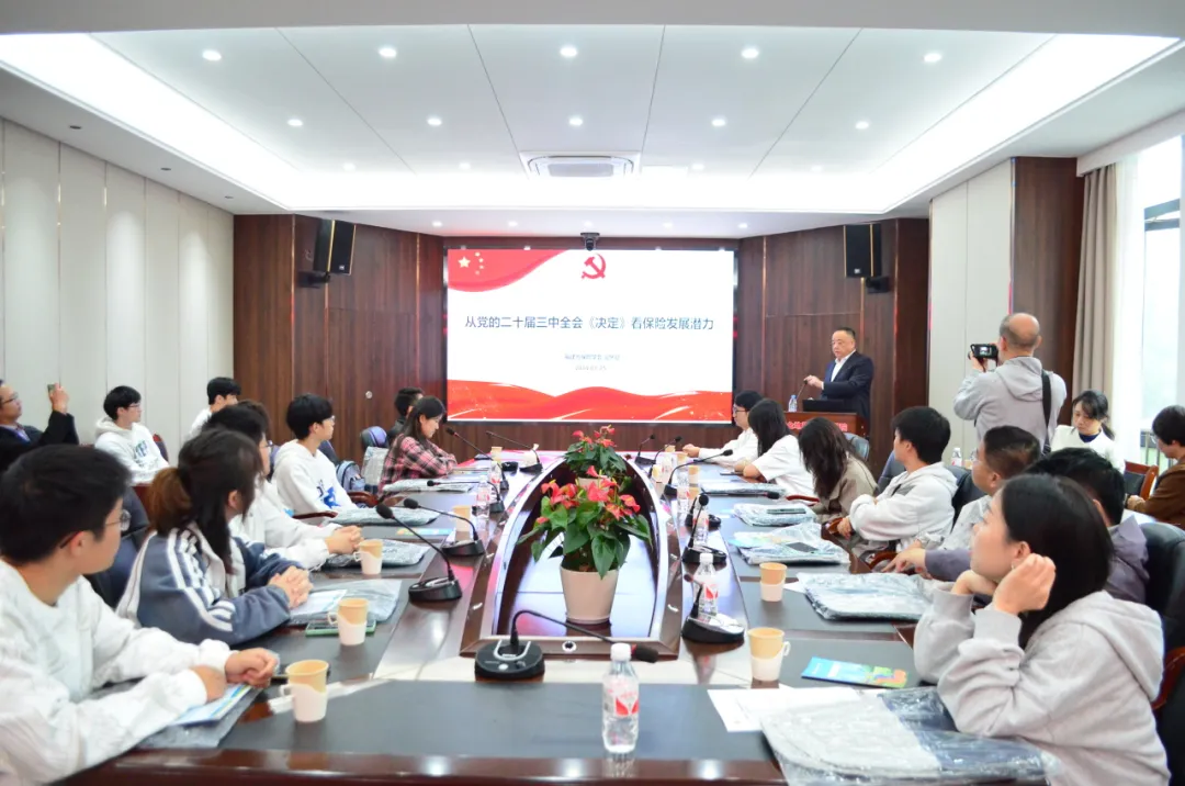 在“保险金融知识进校园”活动中,温怀斌副会长以《从党的二十届三中全会看保险发展潜力》和《财险公司绿色保险产品创新的探索和思考》为题,通过深入浅出的讲解,引领同学们深入理解了国家层面的战略设计,阐述了保险如何在经济周期中扮演“减震器”与“稳定器”的角色,以及其在服务民生、推动经济社会低碳转型中如何积极履行社会责任,不仅拓宽了同学们的视野,更进一步增强了他们的风险防范意识和保险理念。