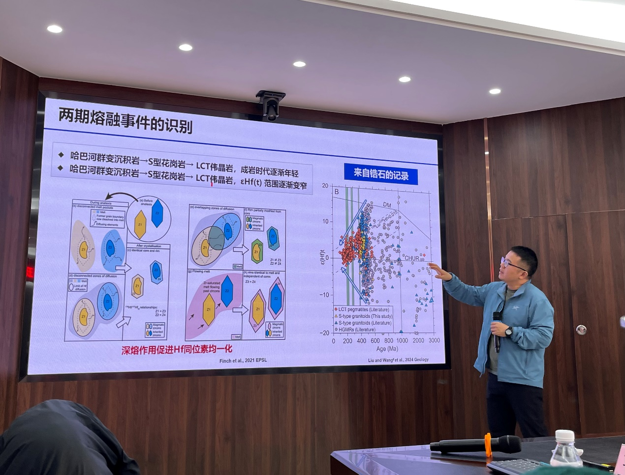 报告中,王瑞教授针对由碰撞背景下仍可形成大型、超大型矿床的理论,引出碰撞带成矿的关键科学问题“碰撞带背景下多类型矿化的成因机制”。基于地壳组成的多样性,王教授进一步从下地壳熔融和斑岩Cu矿床和中上地壳熔融和伟晶岩Li-Be矿床两大成矿系统详细解析了其成矿的物质来源、深部动力学过程与浅部响应机制。报告强调,深入研究碰撞带地壳熔融与成矿效应,对于理解地球内部过程、揭示成矿规律、指导矿产勘查具有重要意义;同时提出未来的研究应进一步加强多学科交叉融合,综合运用地质学、地球化学、地球物理学等多学科的理论与技术,深入探索碰撞带地壳熔融的精细过程与成矿效应的复杂机制。