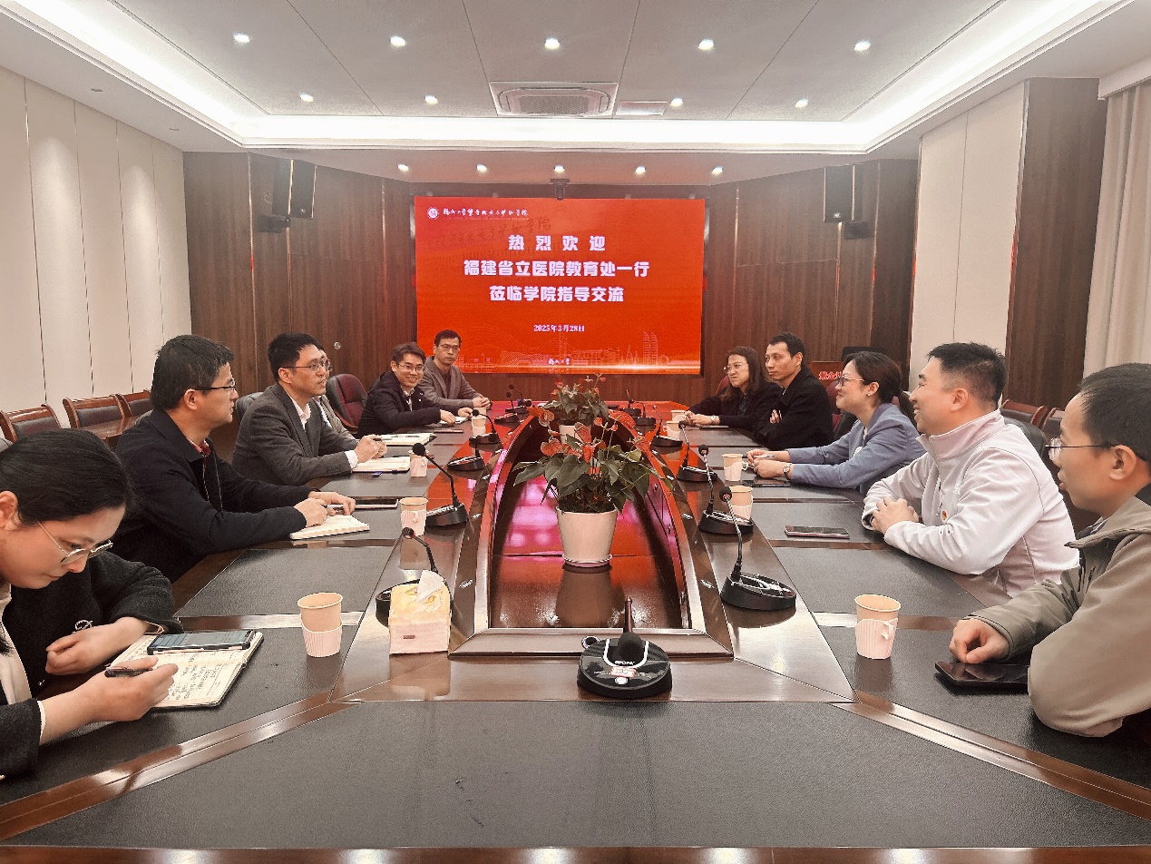 3月28日,福建省立医院教育处负责人谢颖一行应邀到访果冻传媒 开展调研交流。学院党委书记郑寿,党委副书记张志雄,副院长王浩、陈志波、胡建华等领导班子成员参加座谈。