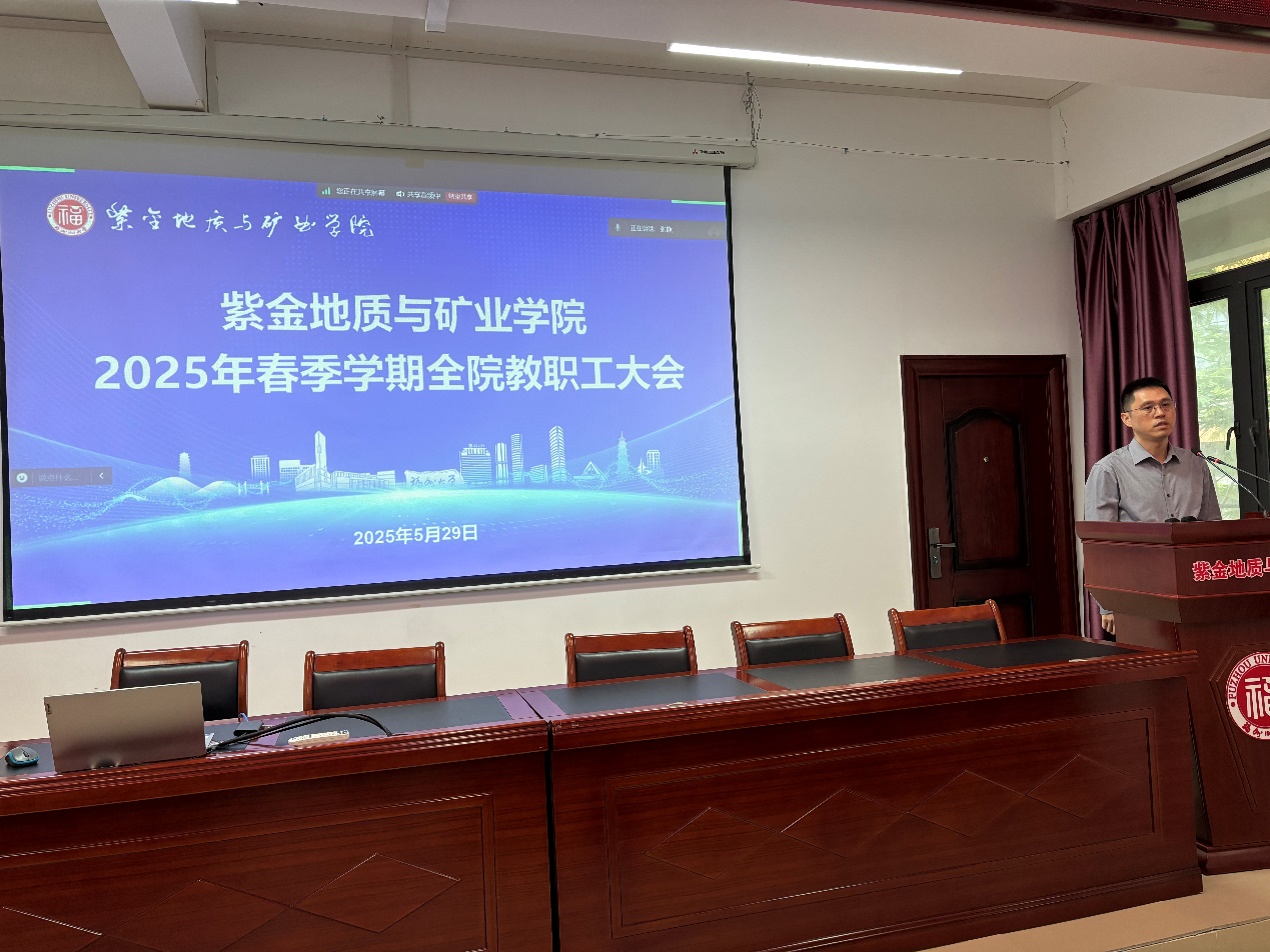 2025年5月29日,紫金学院于紫金楼304报告厅召开2025年春季学期末全院教职工大会。会议由学院党委书记郑寿主持,学院党政领导班子全体成员及全院教职工参加会议。