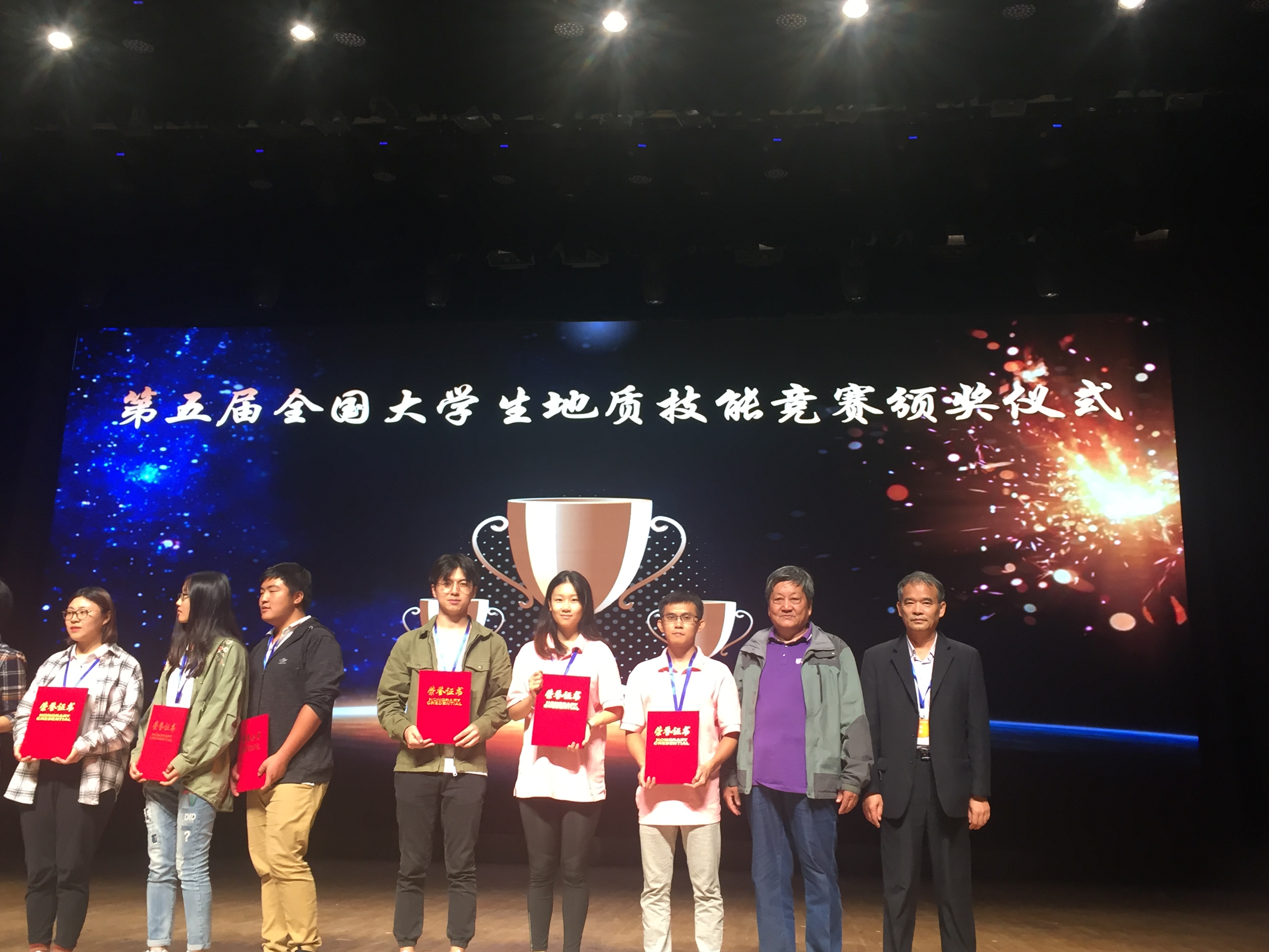 全国大学生地质技能竞赛分为地质技能综合应用、野外地质技能、地质标本鉴定、地学知识竞赛等四个环节。经过三天的激烈角逐,周侯伯、魏婧卉、杨祥玉代表队获得地质技能综合应用模块一等奖,汤益强、任康、孙浩代表队和陈博洋、李思睿、冯国政代表队分别获得该模块的二等奖,果冻传媒 代表队获得团体二等奖,进入了地学知识竞赛模块(团体总分前9名)并获得二等奖(第4名),肖爱芳老师获得优秀教练奖。李思睿同学在参加地质野外技能竞赛环节不慎被岩石割伤左手,在进行了简单的缝合后,克服困难,继续完成了后续比赛,被组委会颁发竞赛特别奖。在本届竞赛中,我校参赛队获得了历届最好的成绩,尤其是在地质技能综合应用模块取得了重大突破,并获得团体二等奖。