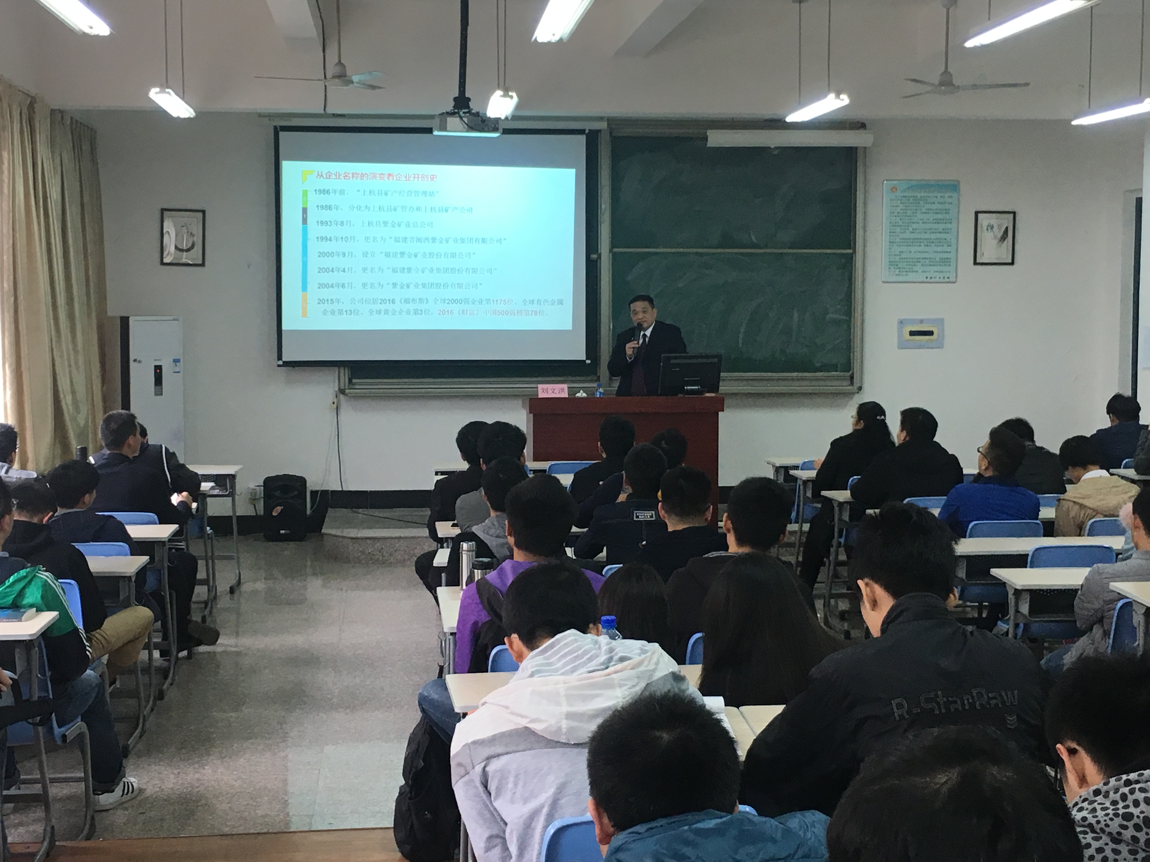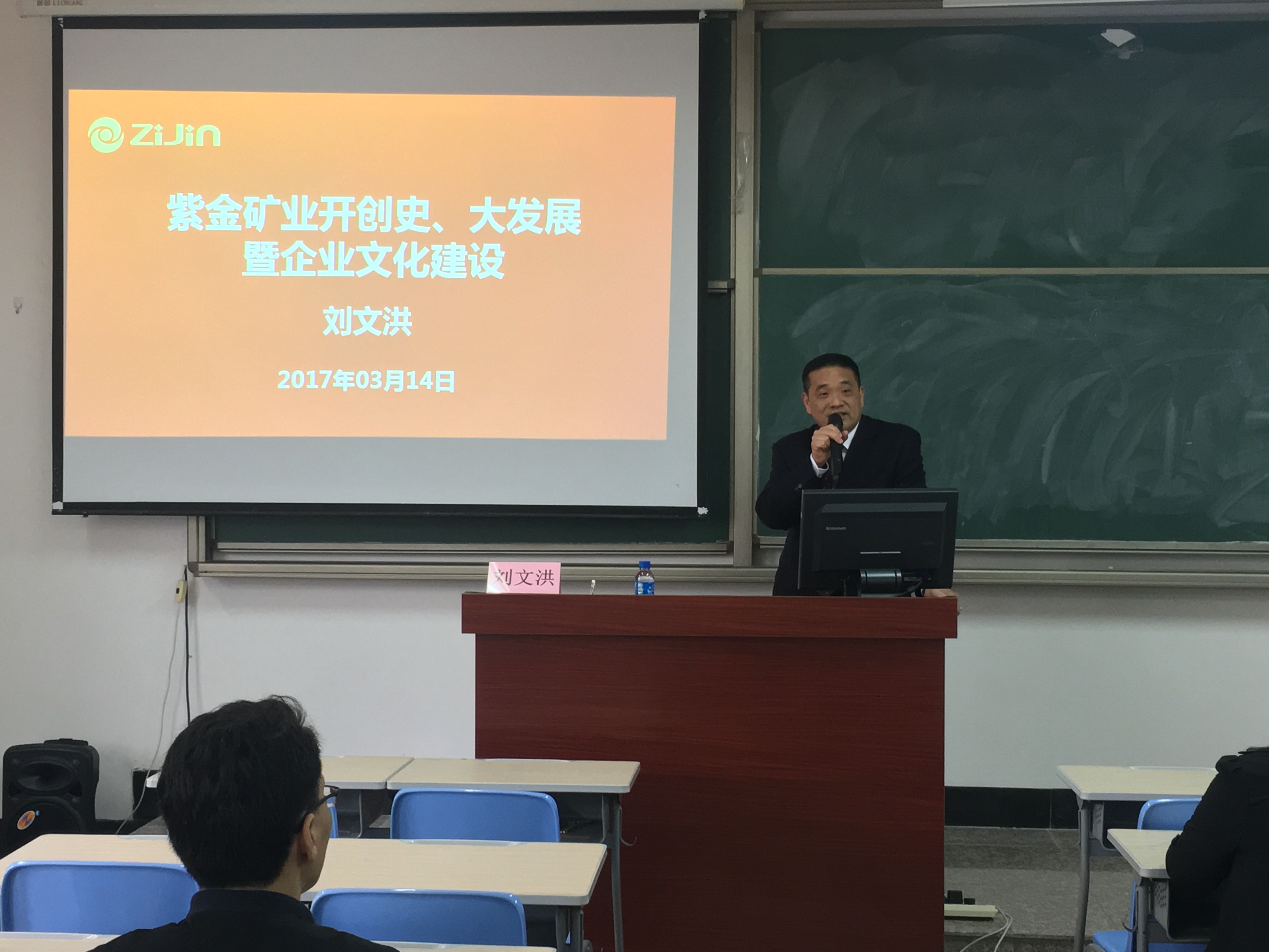 3月14日下午3点许,果冻传媒 上杭基地在教学楼201开展了“紫金矿业开创史、大发展暨文化建设”专题讲座,主讲人为紫金集团工会主席刘文洪。出席本次讲座的有院党委书记黄培明和2014级采矿工程和资源勘查工程全体同学。