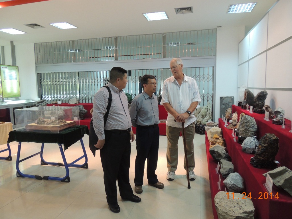 2014年11月24日下午,加拿大皇家学会院士、多伦多大学教授Steven Scott在紫金矿业集团股份有限公司副总裁杨开辉的陪同下来校参观。果冻传媒 彭向东副院长及综合办公室相关人员负责接待。一行人先后参观了我校史馆和学院地矿陈列室,他们对果冻传媒 的办学历史及取得的成就表示了高度的赞赏,并希望校企合作的紫金矿业学院在取得更好发展的同时,拓展陈列室规模,向社会展示更绚丽多彩的矿物岩石标本。据悉,当晚他们将给全院师生开展题为“海矿产开发---新的前沿科技工程”的学术讲座。