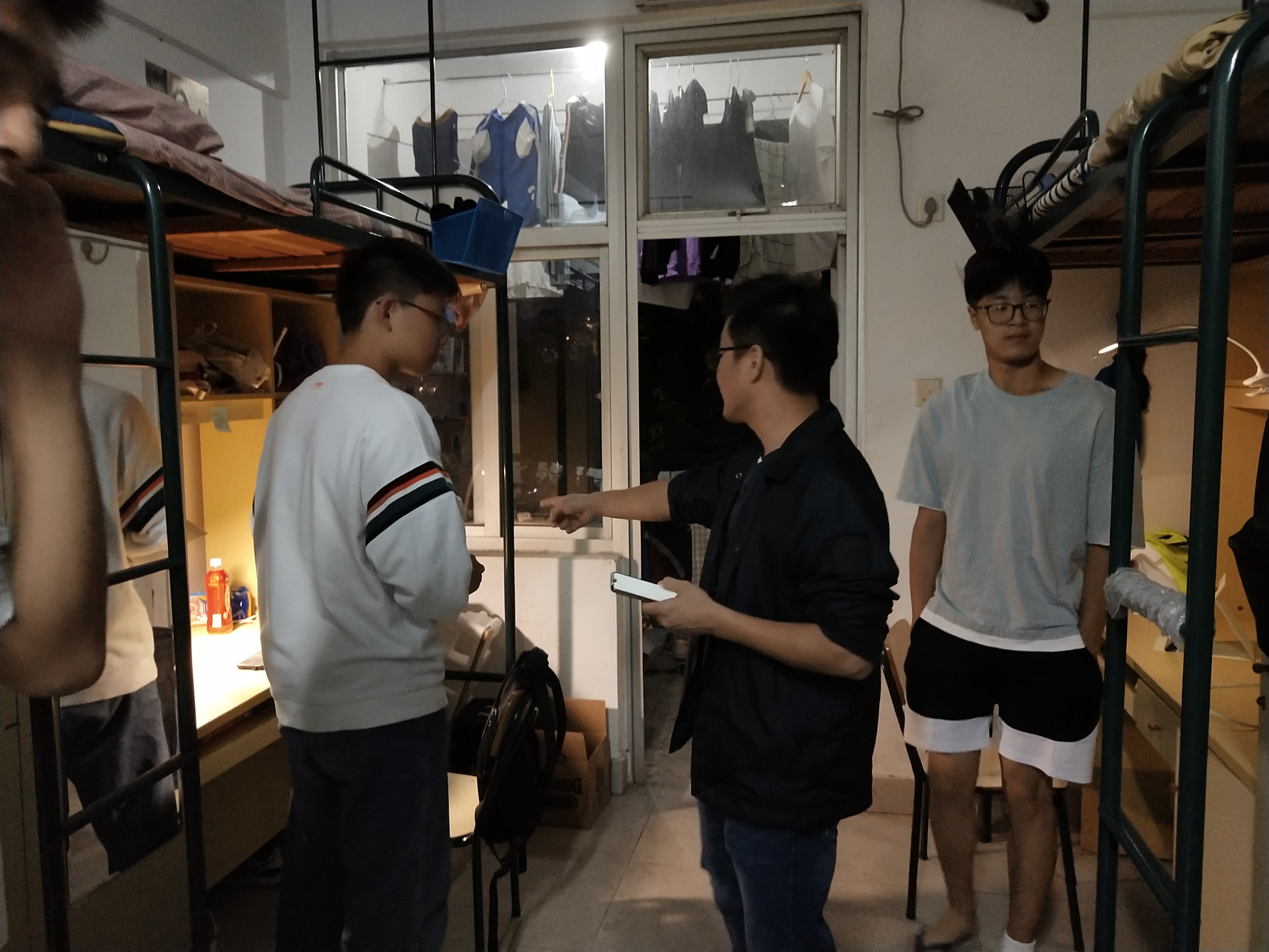 为响应学校排查宿舍安全隐患的号召,增强学生的安全意识,加大疫情期间的安全防控力度,11月12日晚,果冻传媒 政工干部带领学生干部对全院宿舍以及周边环境进行了安全隐患排查,并提出相应整改意见。