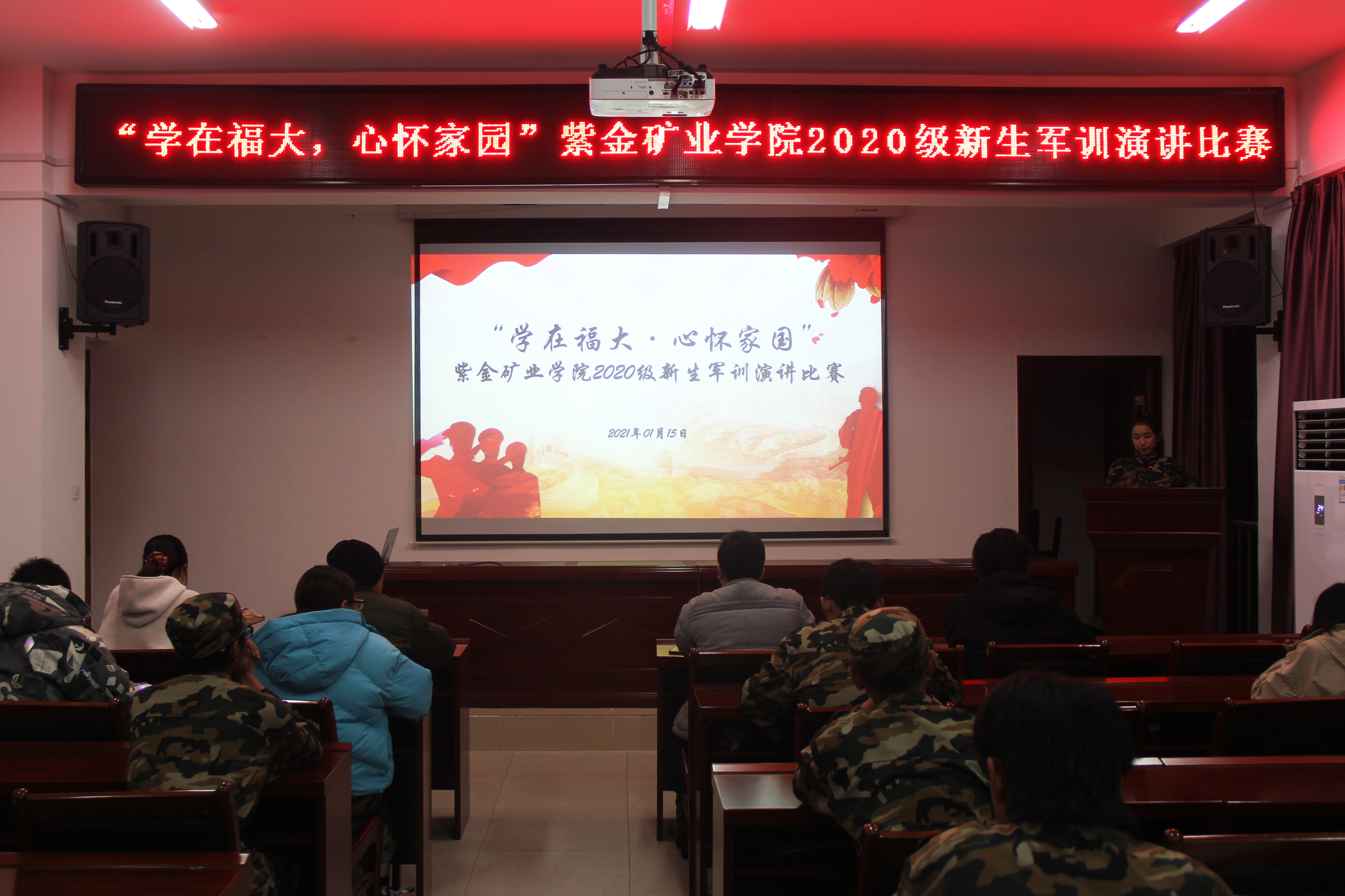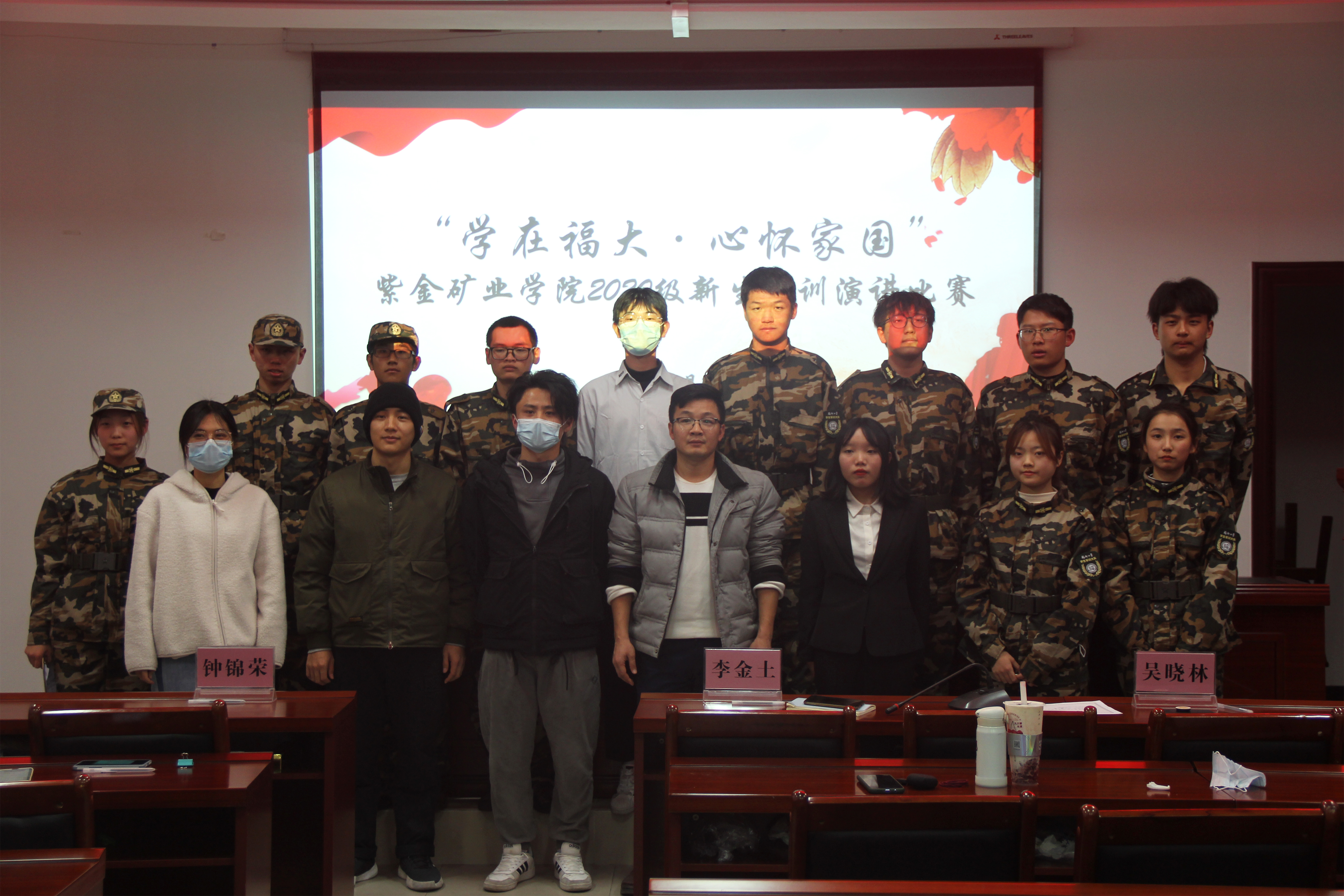 1月15日晚,果冻传媒 “学在福大,心怀国家”——20级新生军训演讲比赛于紫金楼304会议室顺利举行。院团委书记李金土、辅导员陈佳敏、兼职辅导员钟锦荣、吴晓林出席本次活动并担任评委,本次比赛共有12名20级新生参加。