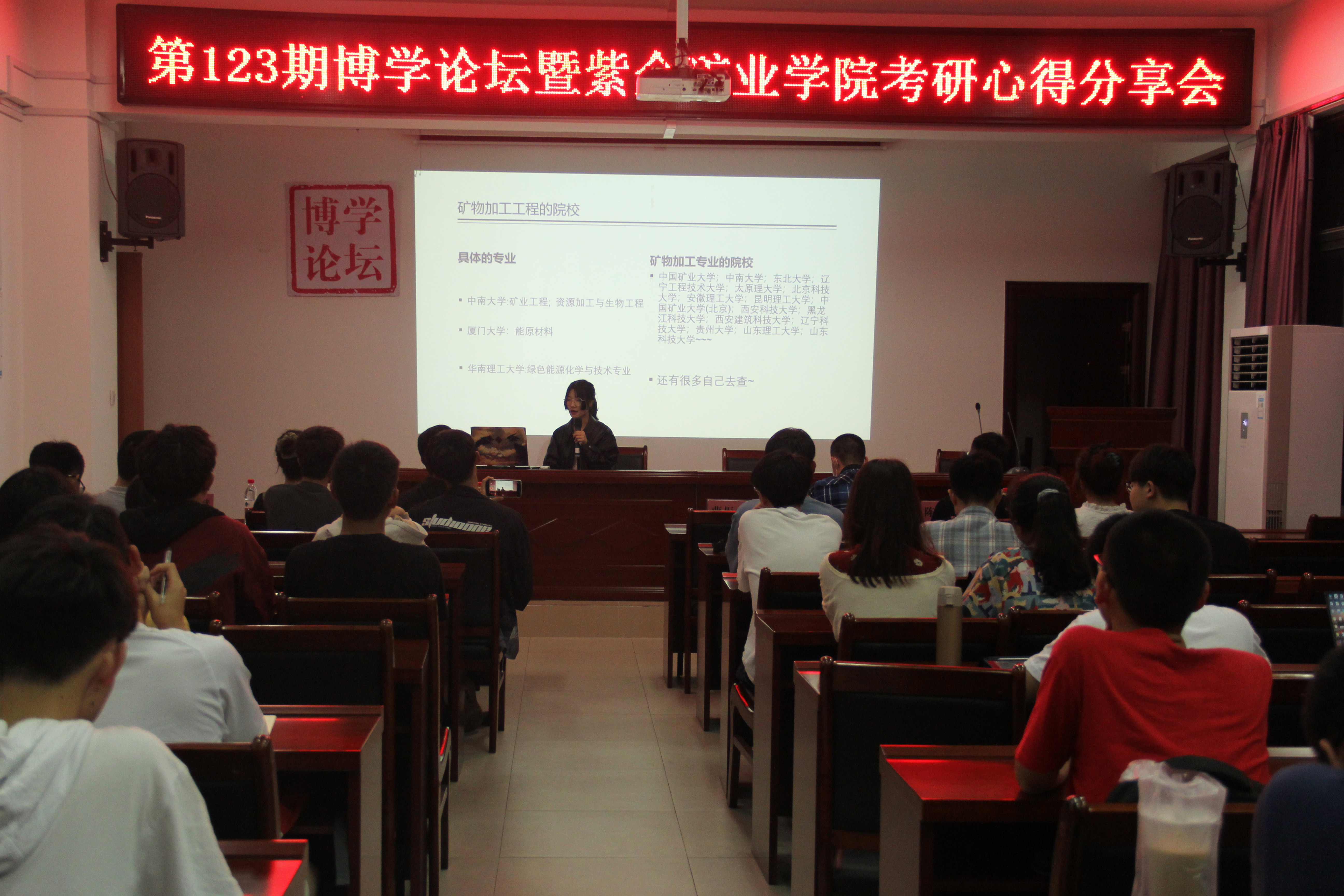 为更好地指导本科生的考研工作,调动果冻传媒 学生的考研积极性,5月9日19:00,果冻传媒 于紫金楼304会议室举办第123期博学论坛暨紫金矿业学院考研心得分享会,陈泽鑫、吴高彬、曹振宇、许洪翔、俞文芳、周江慧六位同学主讲,19、20级的学生代表作为观众参加了本次会议。