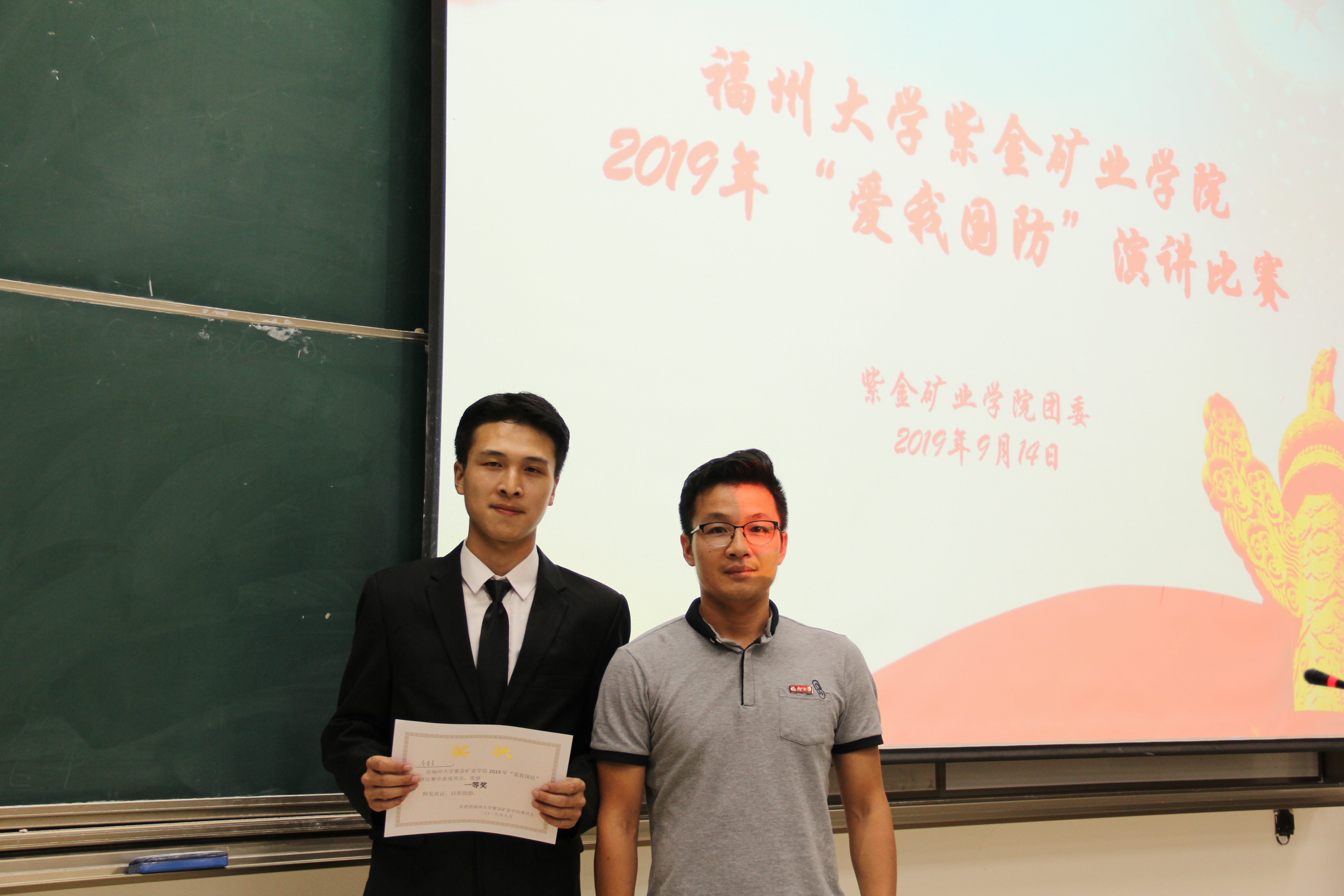 比赛结束后,由主持人宣布获奖结果,由老师和教官为获奖学生颁奖。资源二班的李星星斩获比赛一等奖;资源一班的鄢敏娜和采矿一班的丘浩禹并获比赛二等奖;矿加二班的吴开心、采矿一班的黄泽凯和资源二班的连梦芊三位同学获得三等奖。