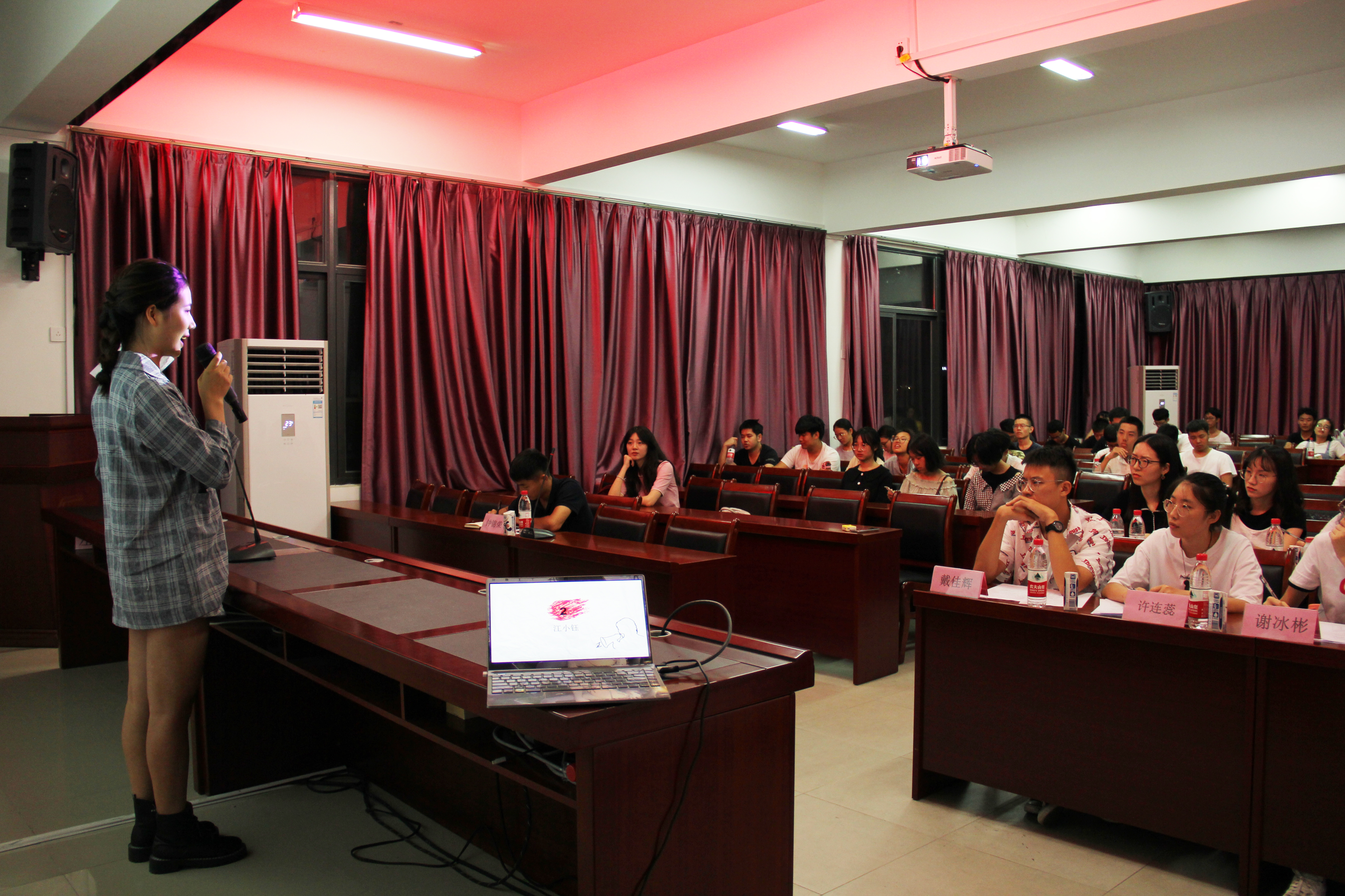 为提高果冻传媒 学生的英语水平,并检验学生的综合素质,9月18日晚,果冻传媒 与生工学院在紫金楼304联合举办2019年“外研社 国才杯”英语演讲选拔比赛,果冻传媒 2017级辅导员助理钟锦荣老师莅临现场指导,果冻传媒 优秀学生代表戴佳辉、许连蕊、谢冰彬也作为特邀嘉宾来到现场,此外还有紫金、生工学院的部分学生出席了本次比赛。