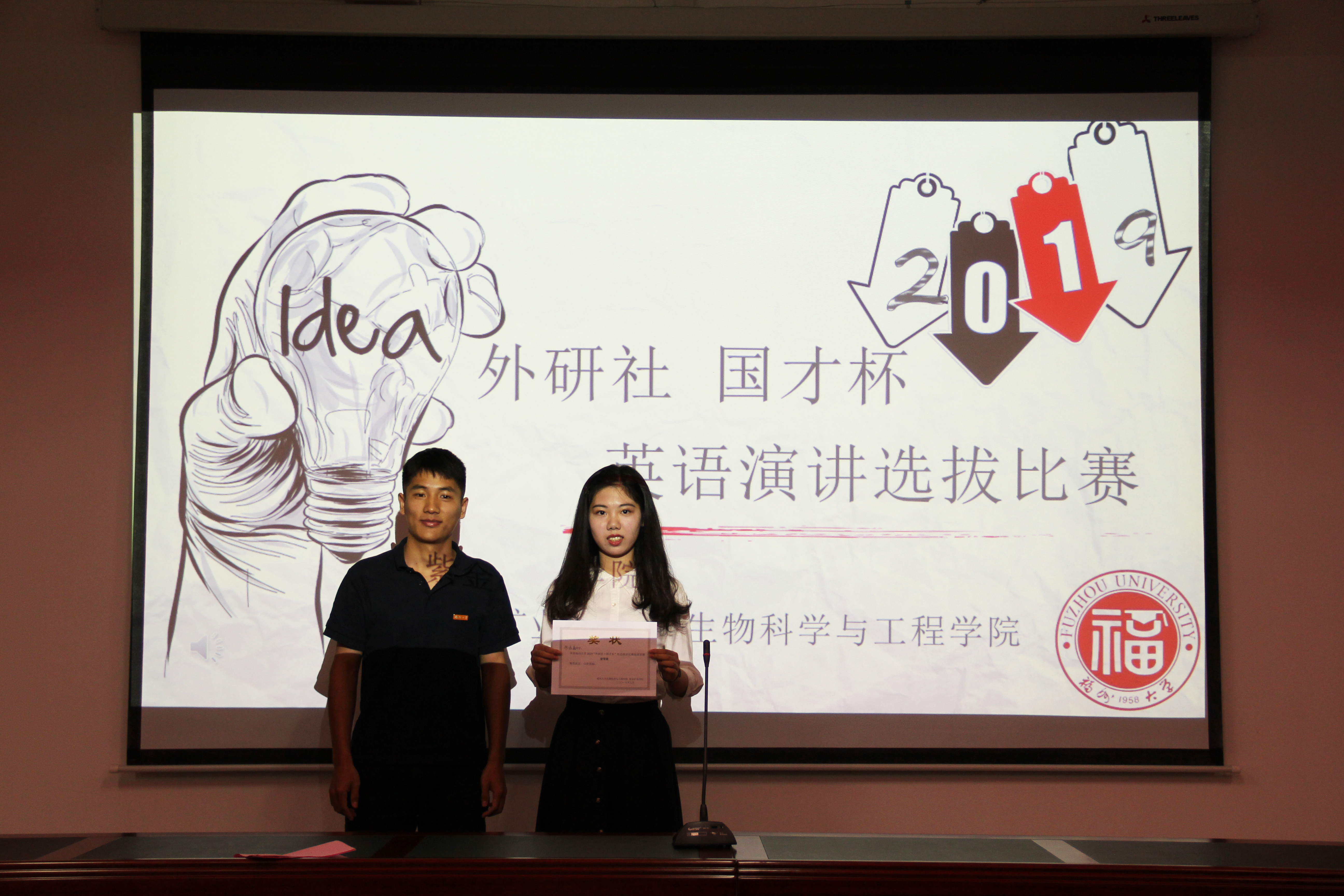 本次比赛紫金学院谢磊鑫同学斩获一等奖,生工学院江小钰、王欣禧荣获二等奖,生工学院的宋恺媛、李璋、陈仪并获三等奖,由钟锦荣老师为获奖选手颁发奖状。