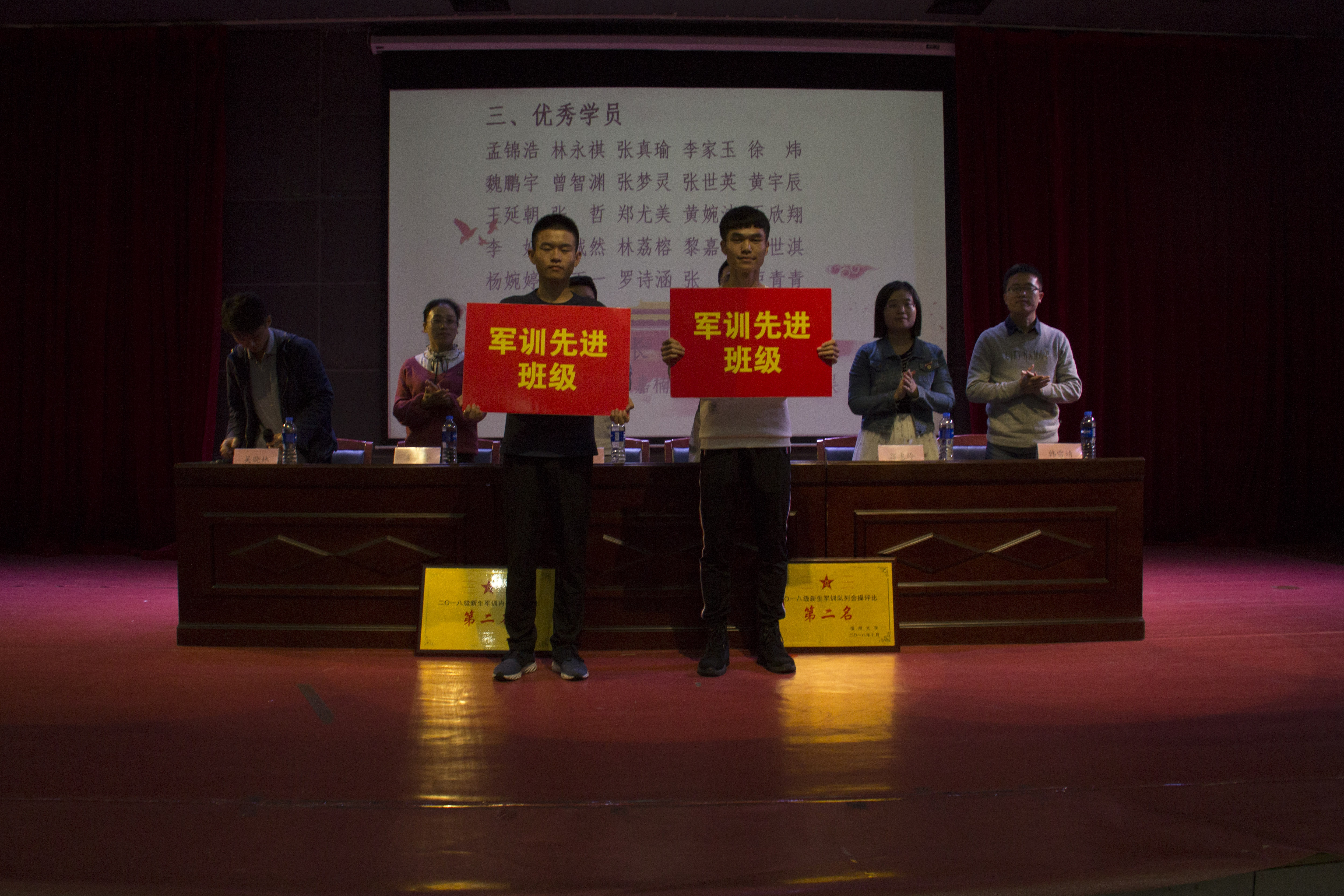 党委副书记郑寿讲话。他首先肯定了2018级新生的努力,并对全体2018级同学寄予厚望。最后,全体同学合唱奏唱《团结就是力量》。军训表彰大会在掌声和欢呼声中圆满结束。