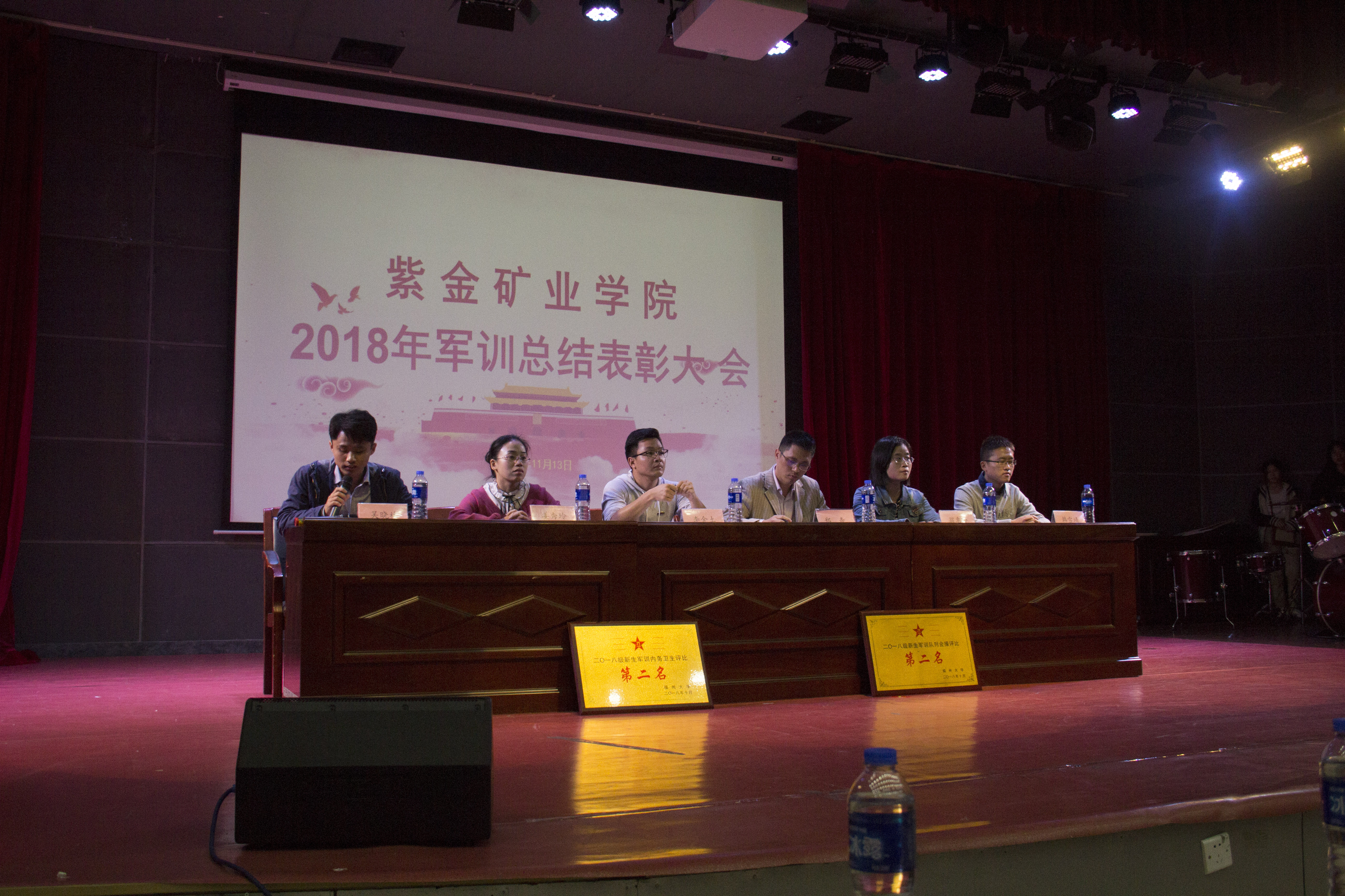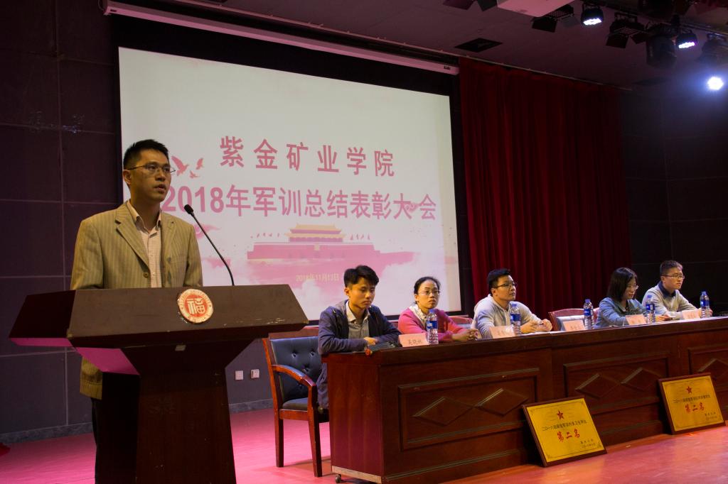11月13日晚,紫金矿业学院2018级军训总结表彰大会于明德厅隆重举行。院党委副书记郑寿、院团委书记李金土、各年级辅导员参加大会。会议由2018级兼职辅导员吴晓林主持。