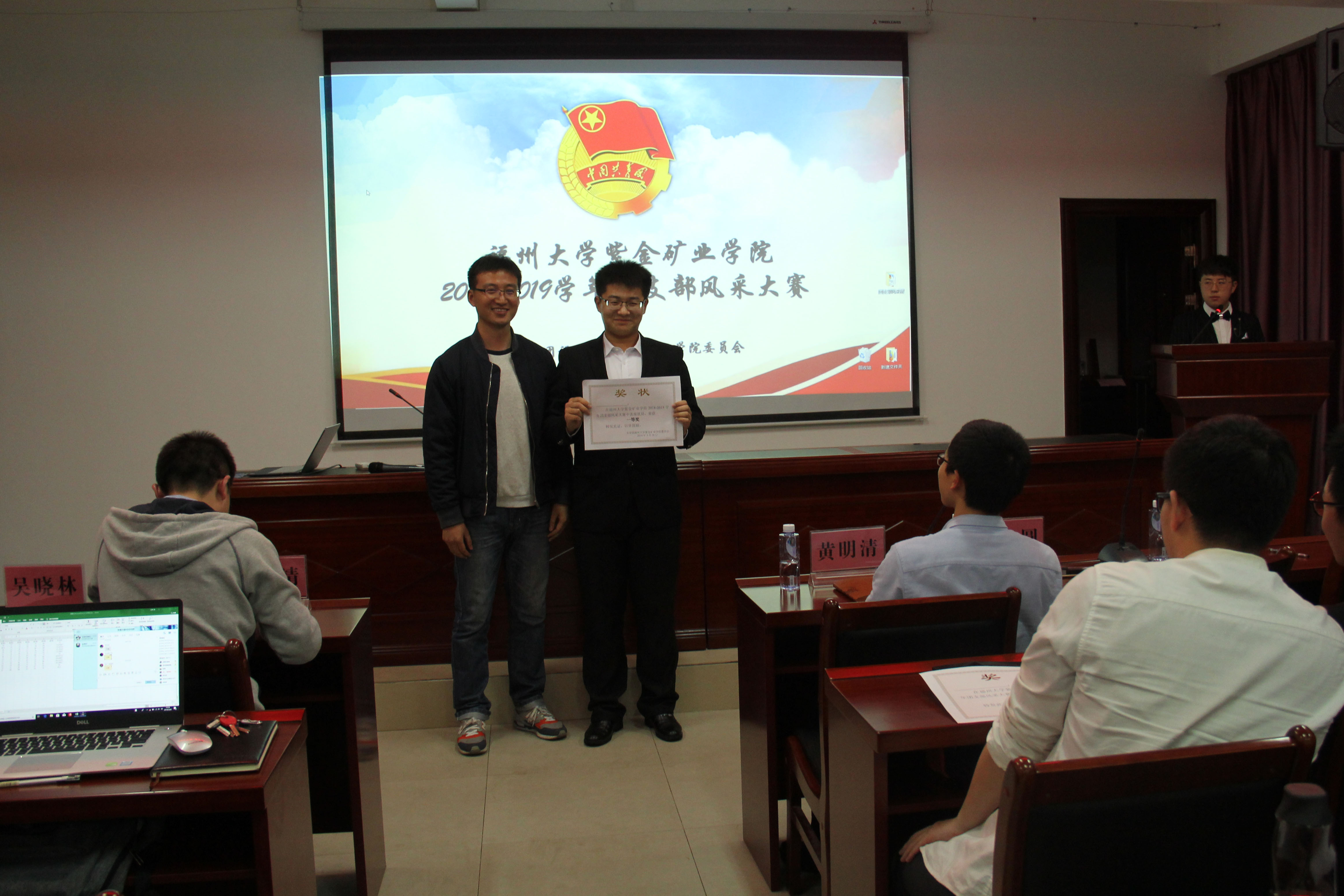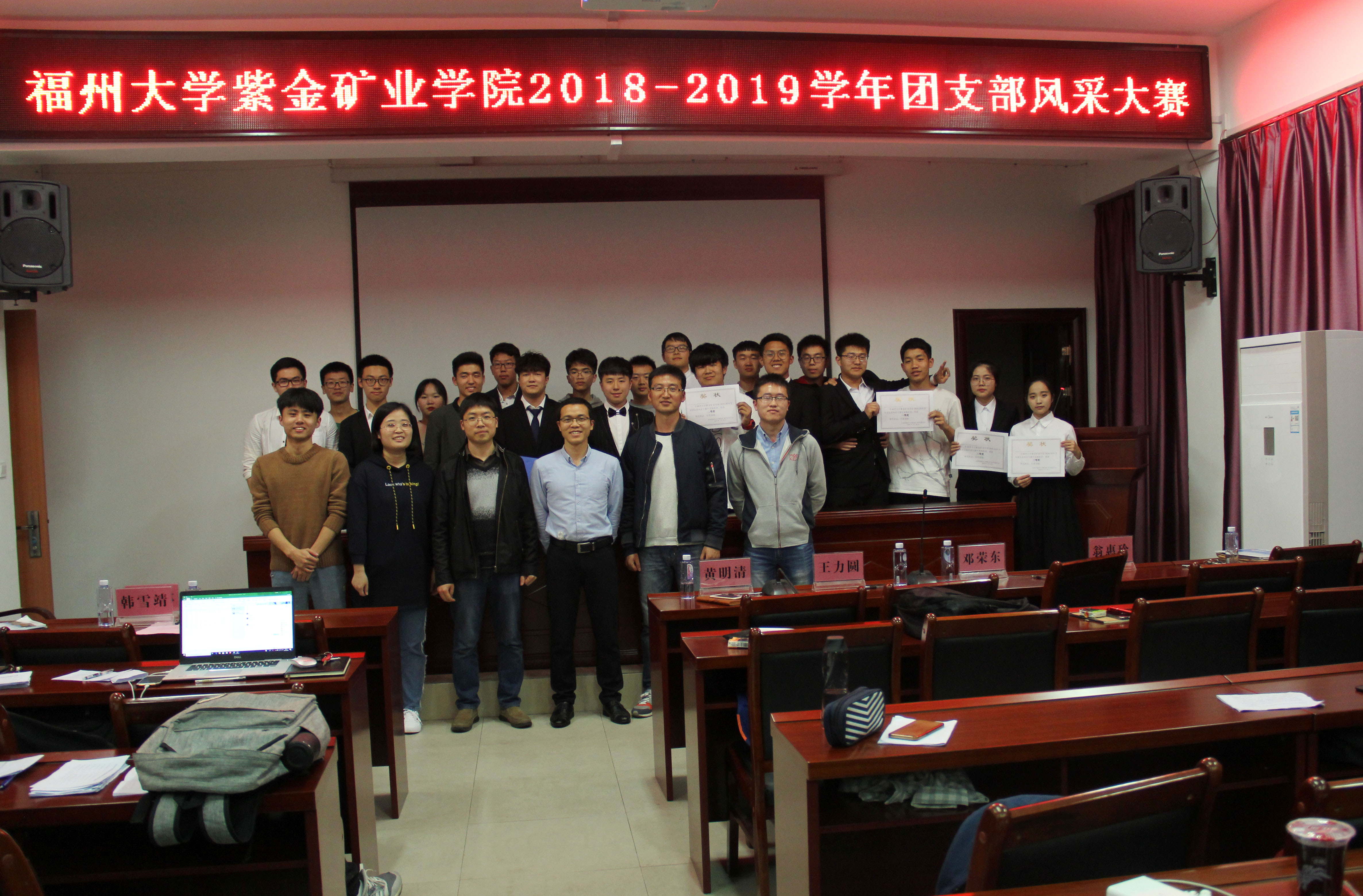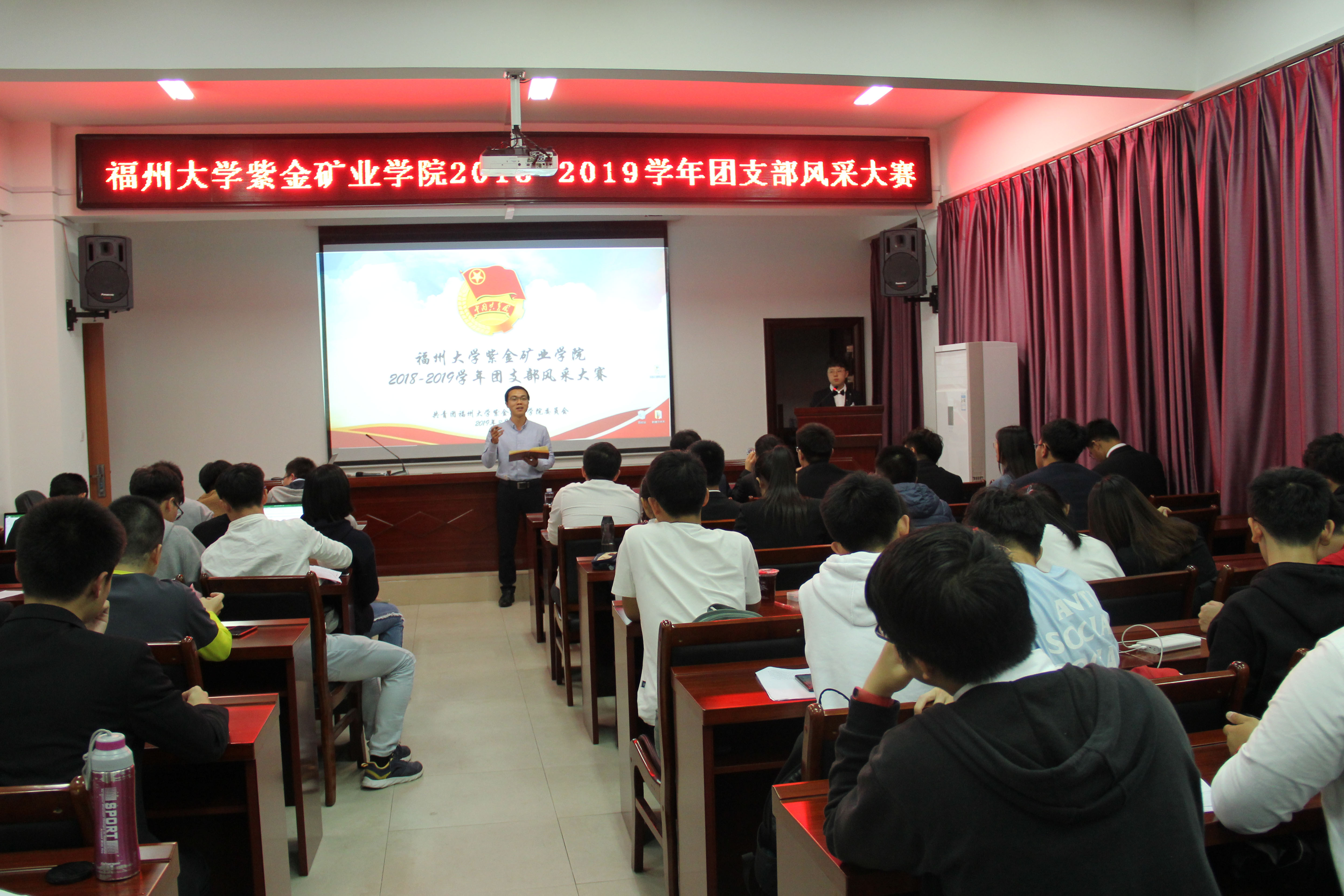 为展示当代大学生的精神风貌,增强团支部的活力和凝聚力,3月20日晚紫金矿业学院2018-2019年度团支部风采展在紫金楼304报告厅顺利举行。专业班导师邓荣东、王力圆、黄明清,2016、2017级辅导员翁惠玲,兼职辅导员吴晓林、韩雪靖出席本次活动,各年级学生代表观看了本次大赛。