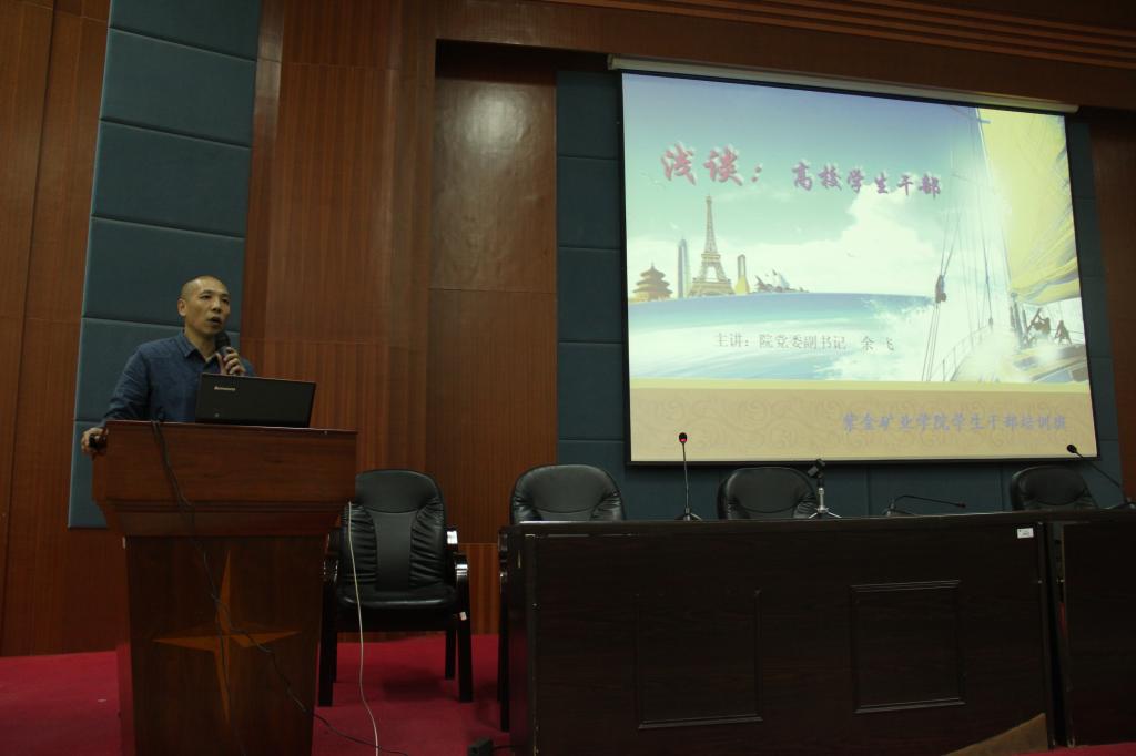 2015年4月8日晚,紫金矿业学院第五届学生干部培训班开班仪式在学院三楼学术报告厅拉开了帷幕。院党委副书记余飞、团委书记李金土及各年级辅导员出席了开班仪式,团委、学生会及班级主要学生干部参加了本次干部培训,开班仪式由院团委副书记刘雪松主持。