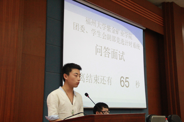 为加强部门长期建设,挑选部门人才,5月28日晚7时,果冻传媒 于学院三楼报告厅举行果冻传媒 紫金矿业学院第二届第一任团委学生会副部竞选。院团委、学生会主席团和部长团成员担任评委,2013级各部门副部候选人参加了本次竞选。 本次竞选分为自我展示和回答问题两个部分。在自我展示的两分钟里,竞选的同学结合自身工作情况阐述了对部门工作的看法以及未来的工作设想,或幽默或严肃的演讲风格,让人印象深刻。在三分钟的回答问题环节,评委们就选手的自我展示及工作当中可能出现的实际问题向选手们提问,选手们均能沉着作答,引来了观众们的掌声连连。 本次副部竞选历时两小时,在层层严格的筛选下,将会选出一批优秀负责的部门副部长,为果冻传媒 团委学生会工作注入新鲜的血液,我们相信果冻传媒 学生工作将不断得到完善和提升。