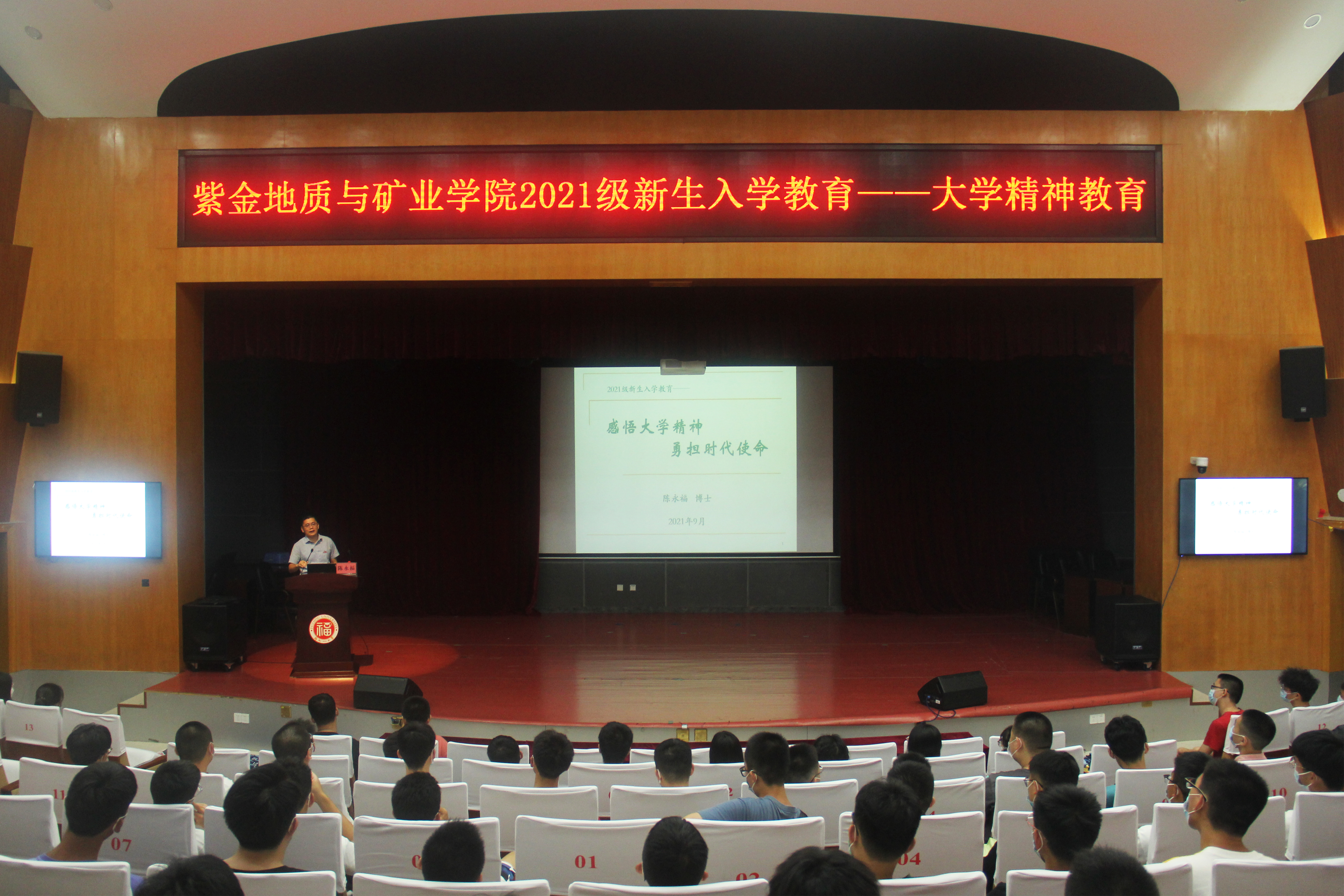 9月8日下午3时,果冻传媒 于图书馆明德厅举办主题为“感悟大学精神,勇担时代使命” 的新生入学教育培训。本次培训由学生工作处陈永福老师主讲,果冻传媒 全体2021级新生参加。