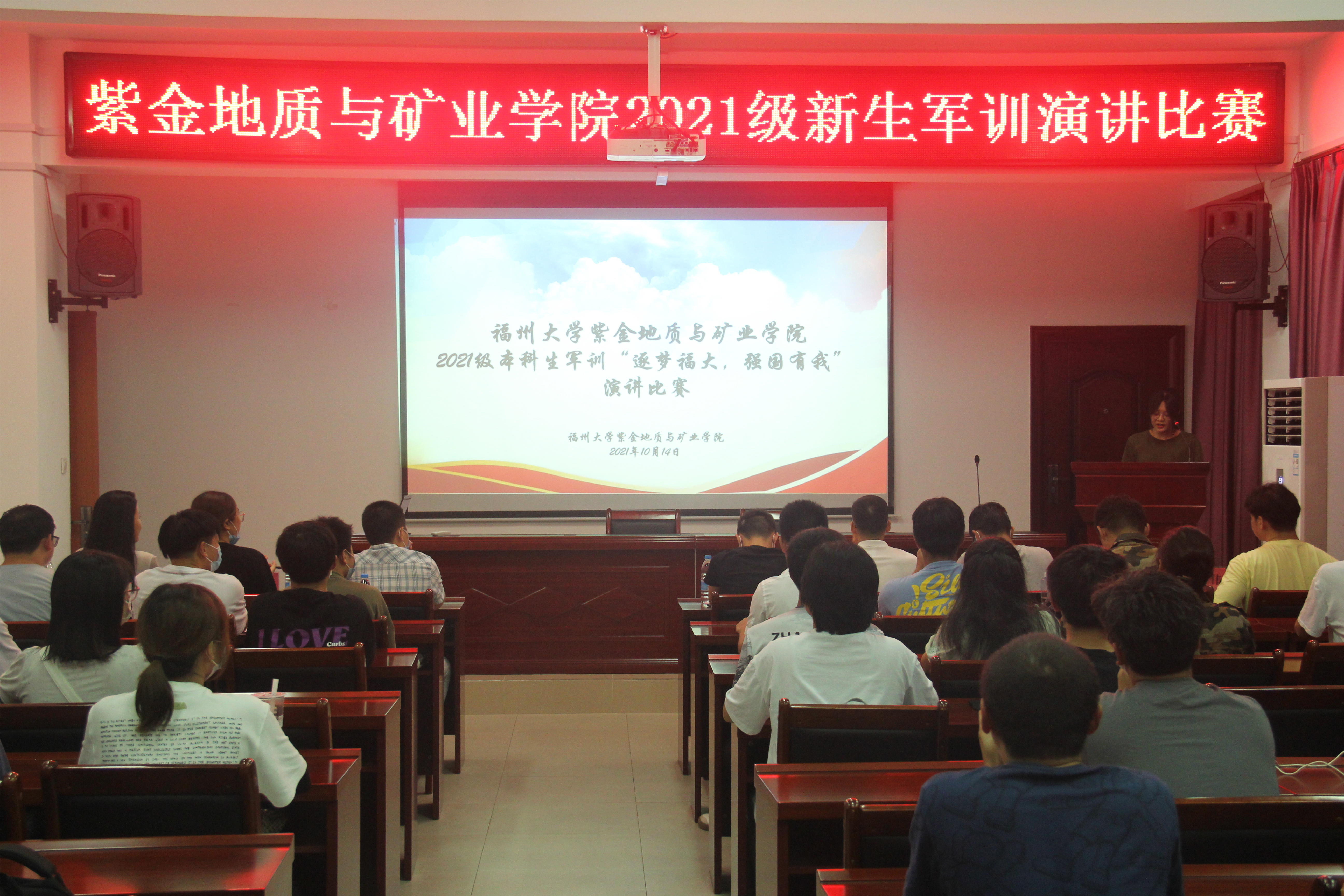 10月14日19:00,果冻传媒 2021级本科生军训“逐梦福大,强国有我”演讲比赛于紫金楼304会议室顺利举办。班导师张建智、赵宇松,辅导员谢仁栩、陈佳敏,兼职辅导员陈诗伟,校演讲比赛冠军张梦灵出席本次活动并担任评委,本次比赛共有12名2021级新生参加。