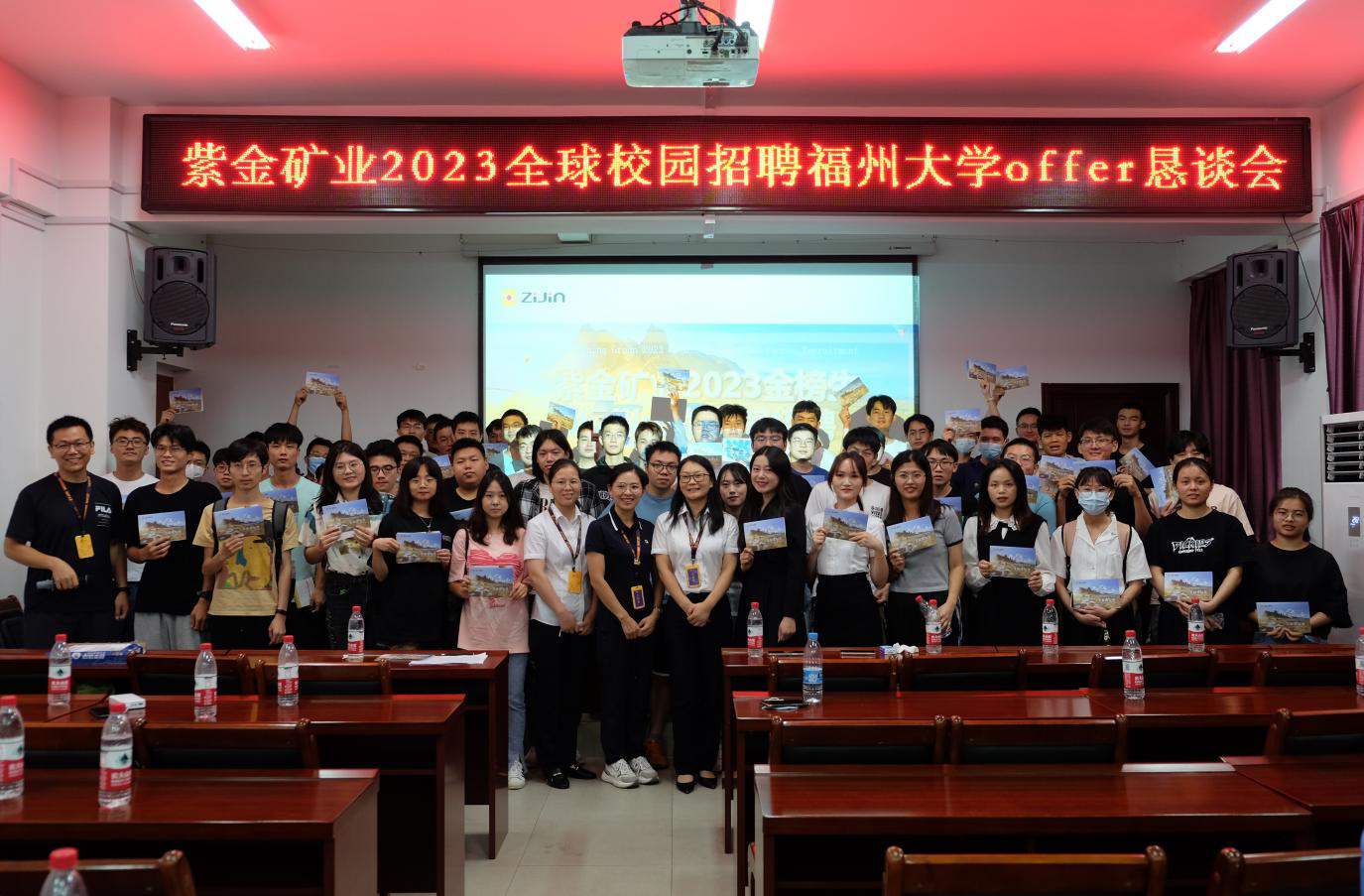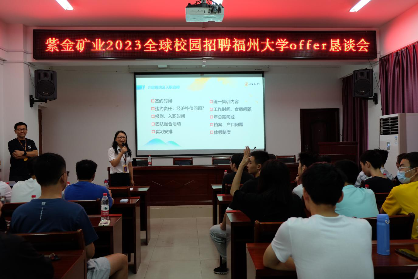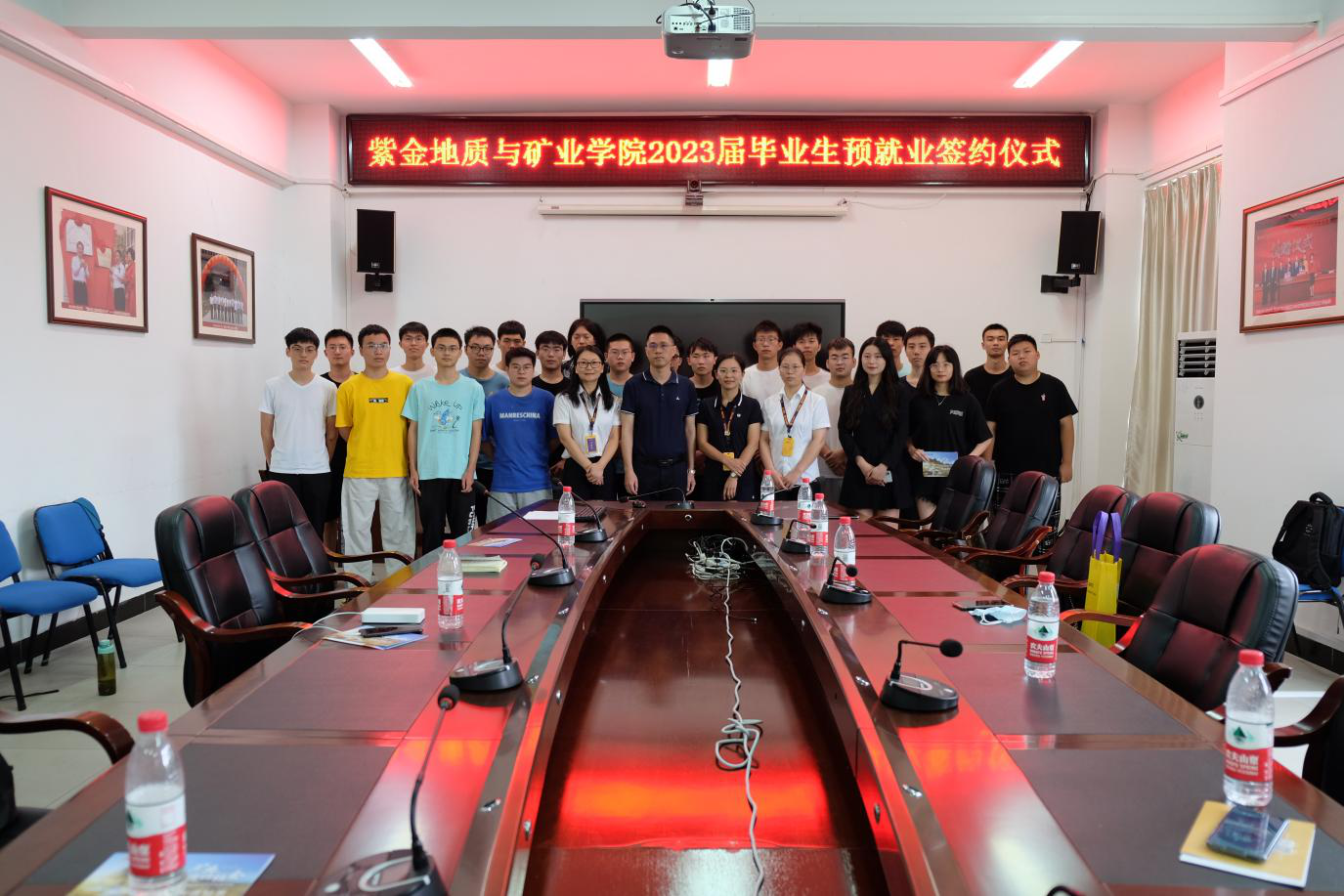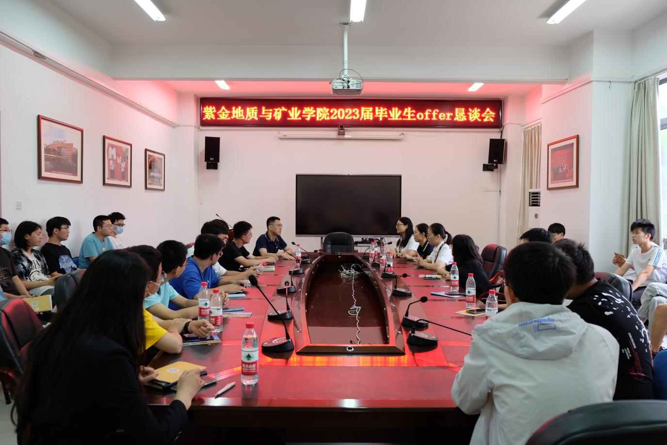 签约仪式前,紫金集团与毕业班学生在紫金楼304召开恳谈会,双方就用人与就业需求进行交流。