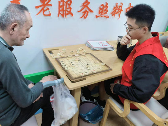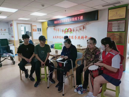 击打非洲鼓,一同下象棋。非洲鼓学习简单,震动频率可以干预到人体内各部位频率,从而起到治疗和保健的作用。老年人下象棋可陶冶情操,预防老年痴呆。志愿者们耐心地与老人们互动学习,共同陪伴老人们健康生活。