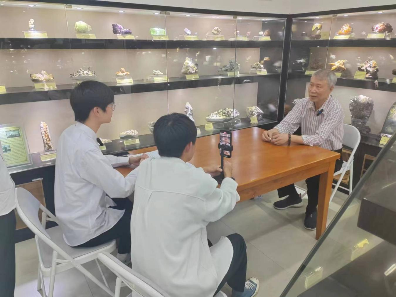 “您是如何走上这条矿石收藏之路的呢?”这句话让梁老陷入了沉思。良久,他似回过神来,缓缓的说了一句“大概在年轻的时候就喜欢了吧。”据梁老的叙述,早年时梁老就有喜欢收藏,而在接触了地质后,才开始收藏矿石。“因为喜欢而了解,也因了解而喜欢”梁老的这句话无不展现他对地质的热爱。这些奇石需要有人发现它,懂得它,保护它。而这些人就是我们“地质人”。梁老的这一番话更像是在对每一个紫金人诉说,诉说他对这门学科的热爱,对福大的留念。